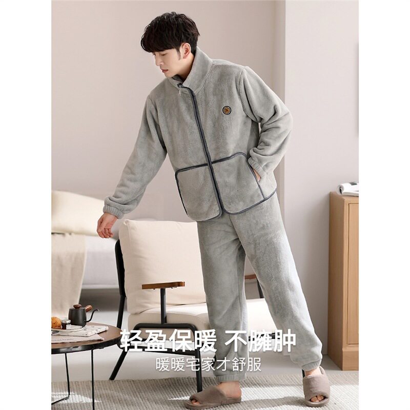 新款珊瑚绒睡衣男士秋冬款加厚套装加绒法兰绒男款冬季家居服大码