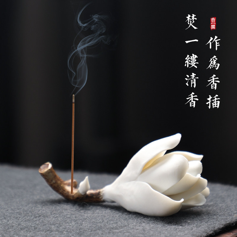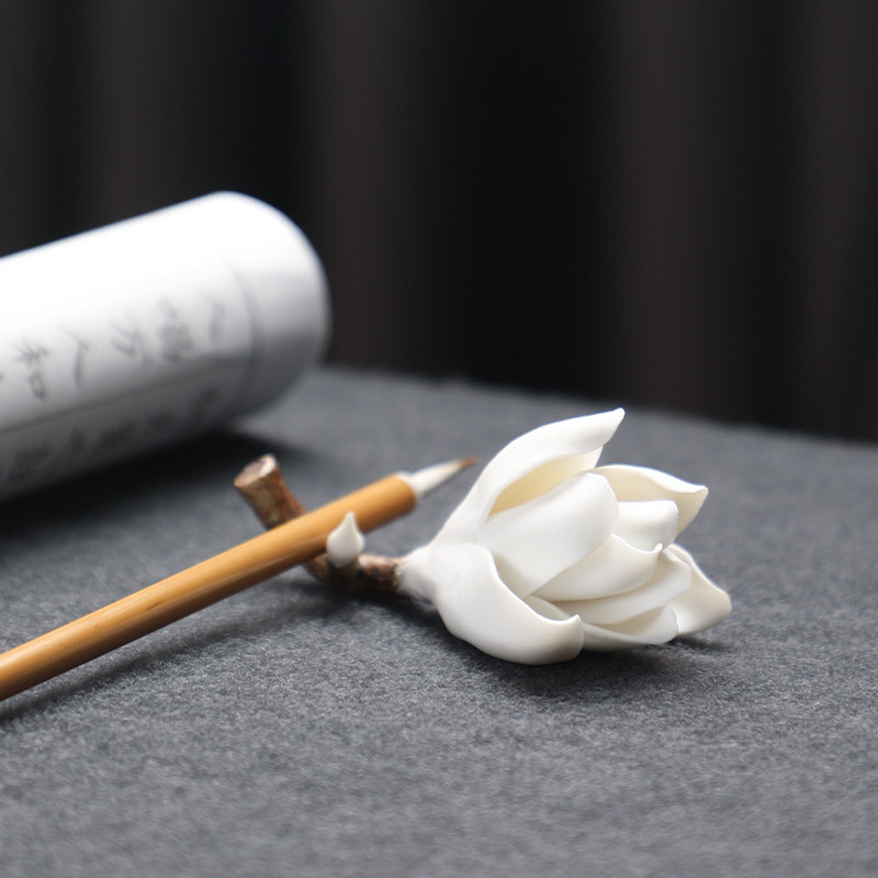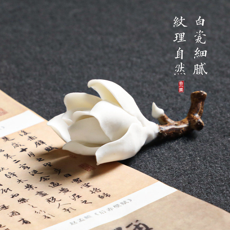 曹一阁玉兰花陶瓷笔搁仿真创意毛笔架子拍摄小道具书房小装饰品多