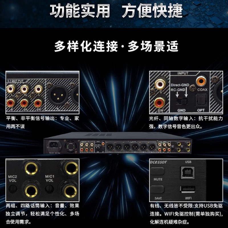 艾唱AC710数字光纤无损前级效果器 高端卡拉OK效果器5.1声道输出