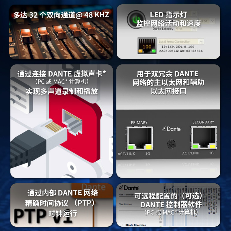 KLARK TEKNIK DN32-DANTE 32双向通道X32 M32录音扩展卡模块