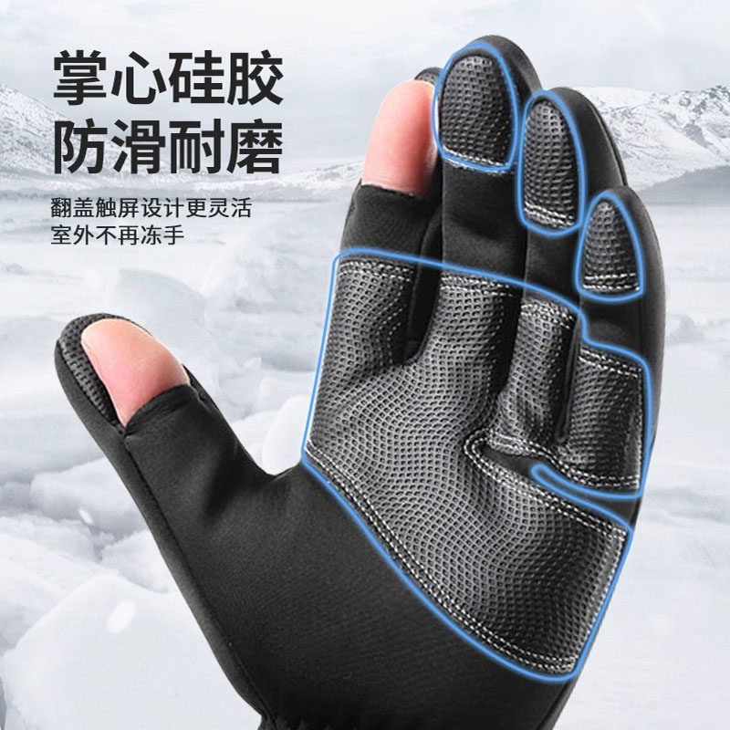 露二指手套男冬季送外卖加绒保暖骑手专用装备手指骑行骑车可触屏