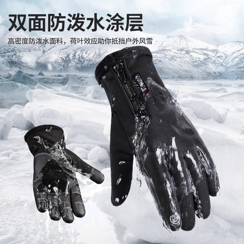冬季保暖加厚骑行滑雪手套触屏摩托车加绒防水防风寒防滑户外防雨