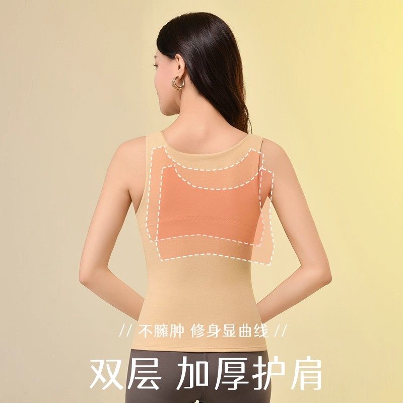 半练方领宽肩保暖背心女秋冬新款带胸垫吊带吸湿发热内搭显瘦打底