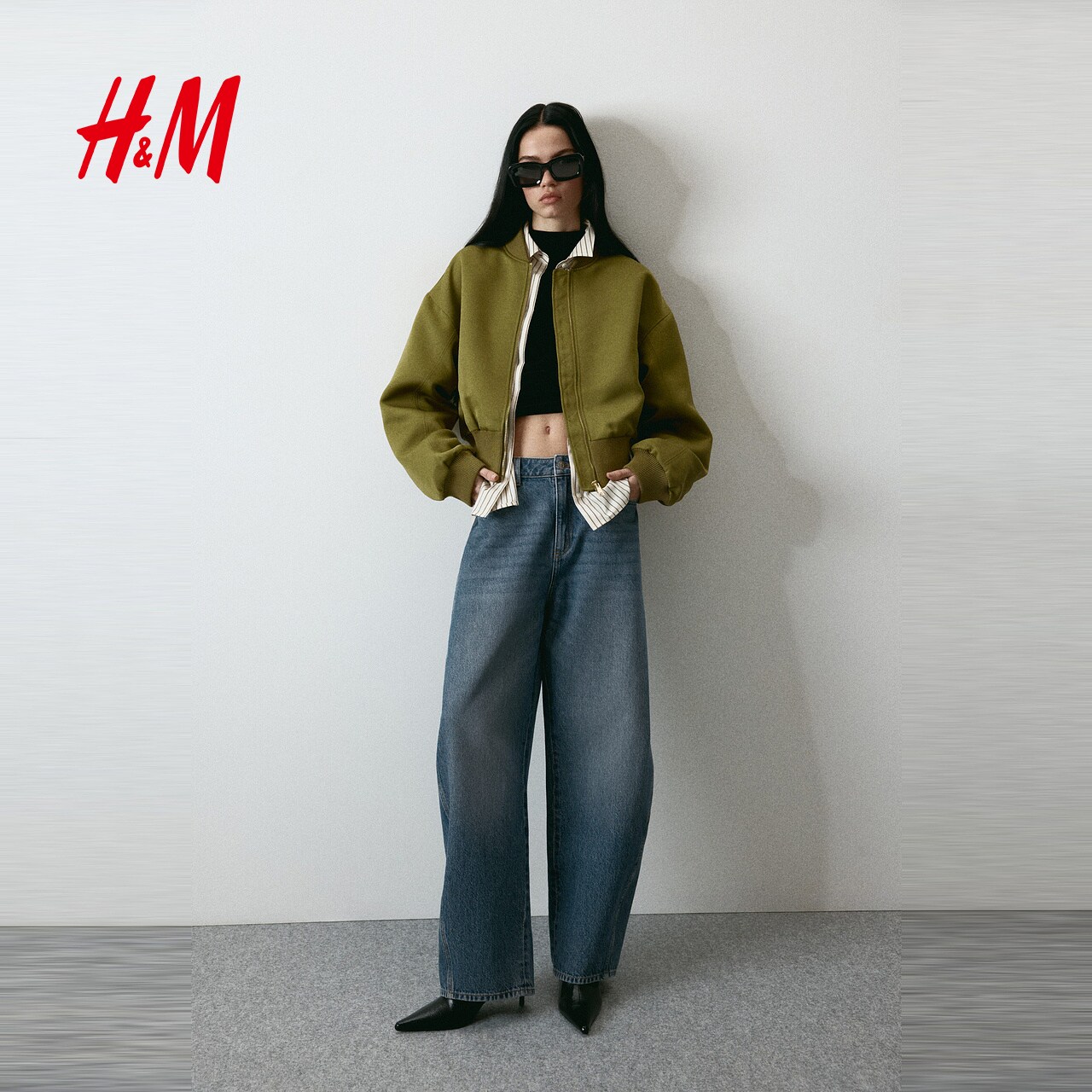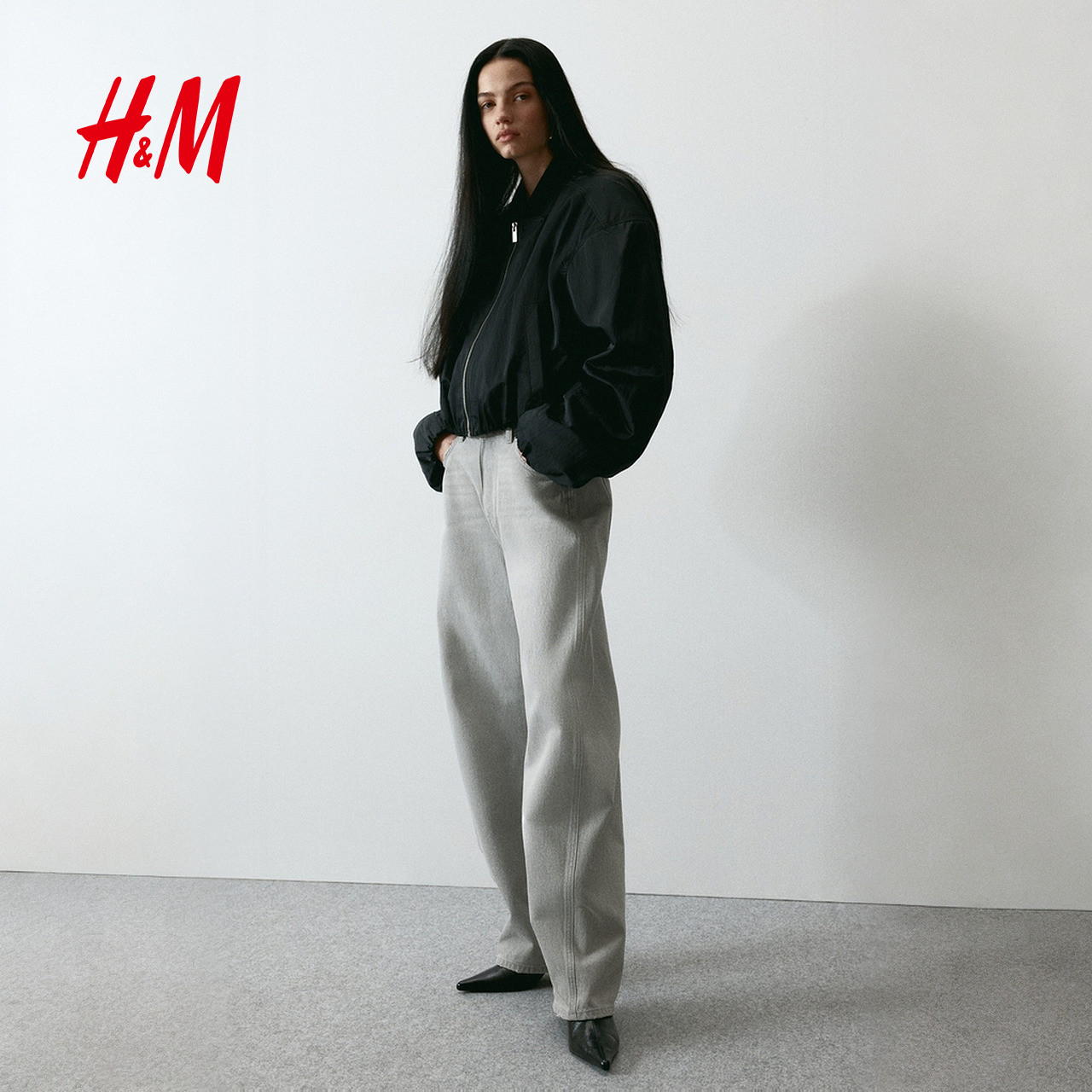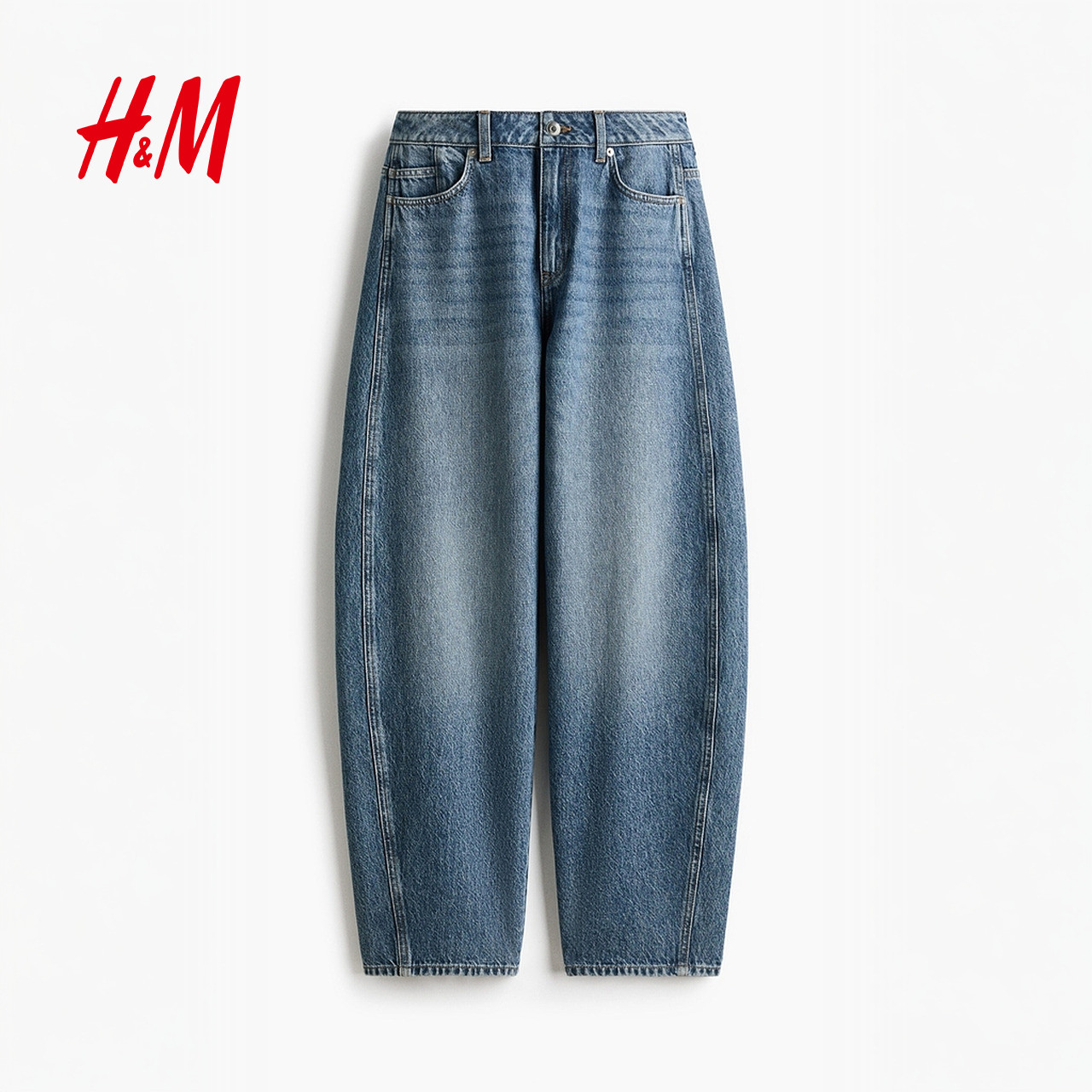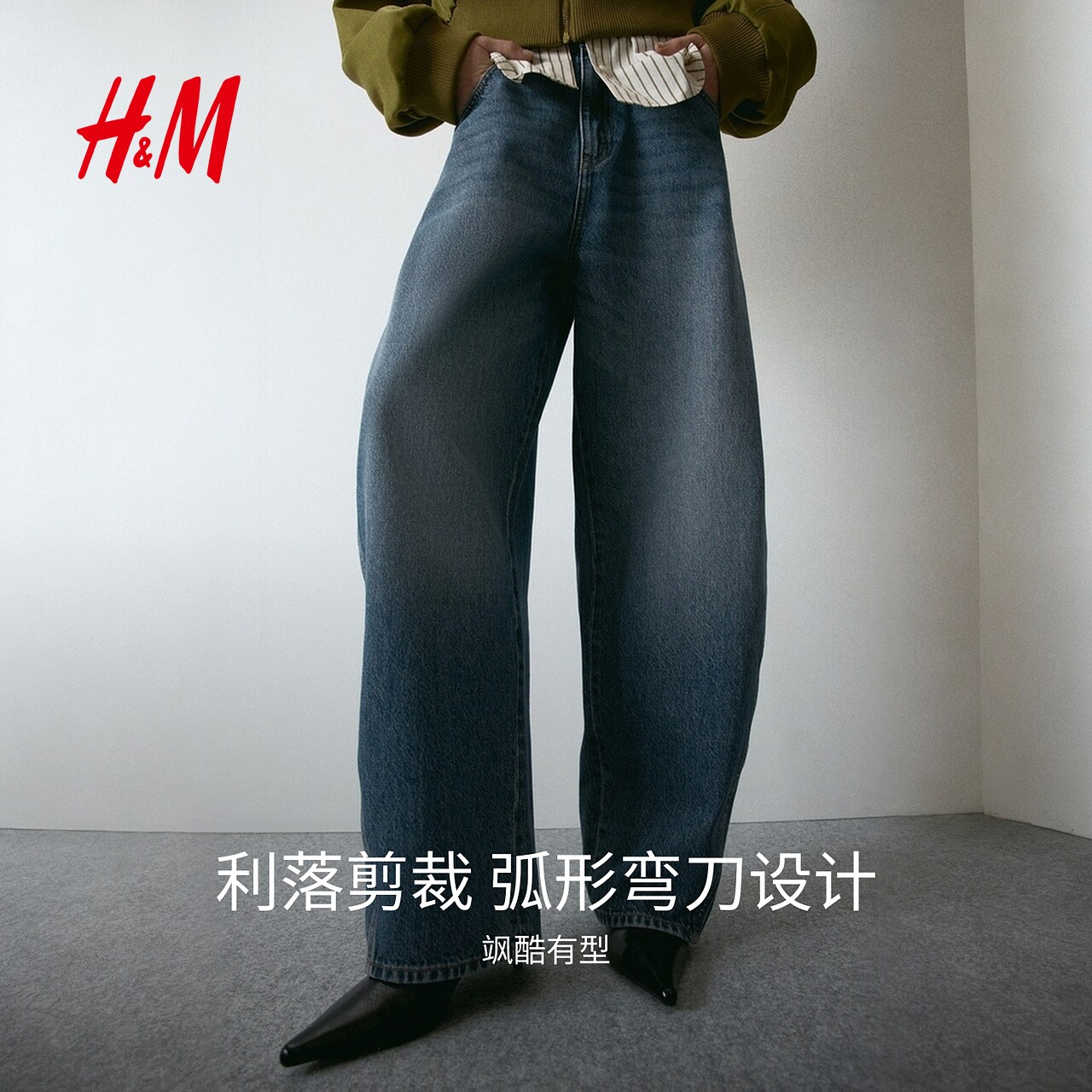 HM女装牛仔裤26春季新款黑色弯刀裤香蕉裤筒形镰刀牛仔裤1309848