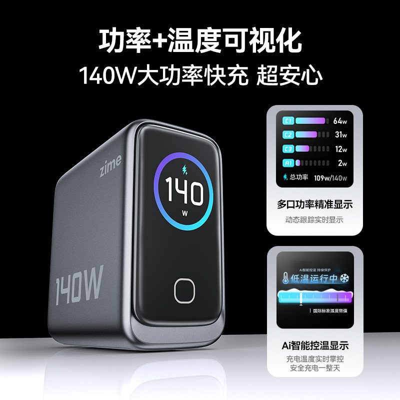 140W氮化镓快充 AI智显功率/温度