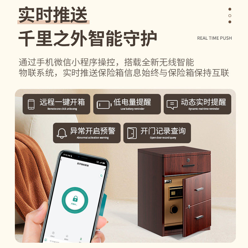 2025新款人脸识别保险柜家用办公床头柜保险箱一体防盗小型保险柜手机WiFi远程警报现代简约卧室床头柜保险柜