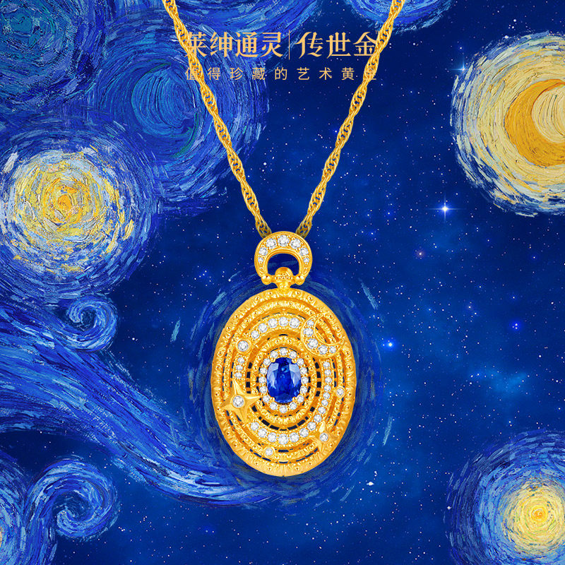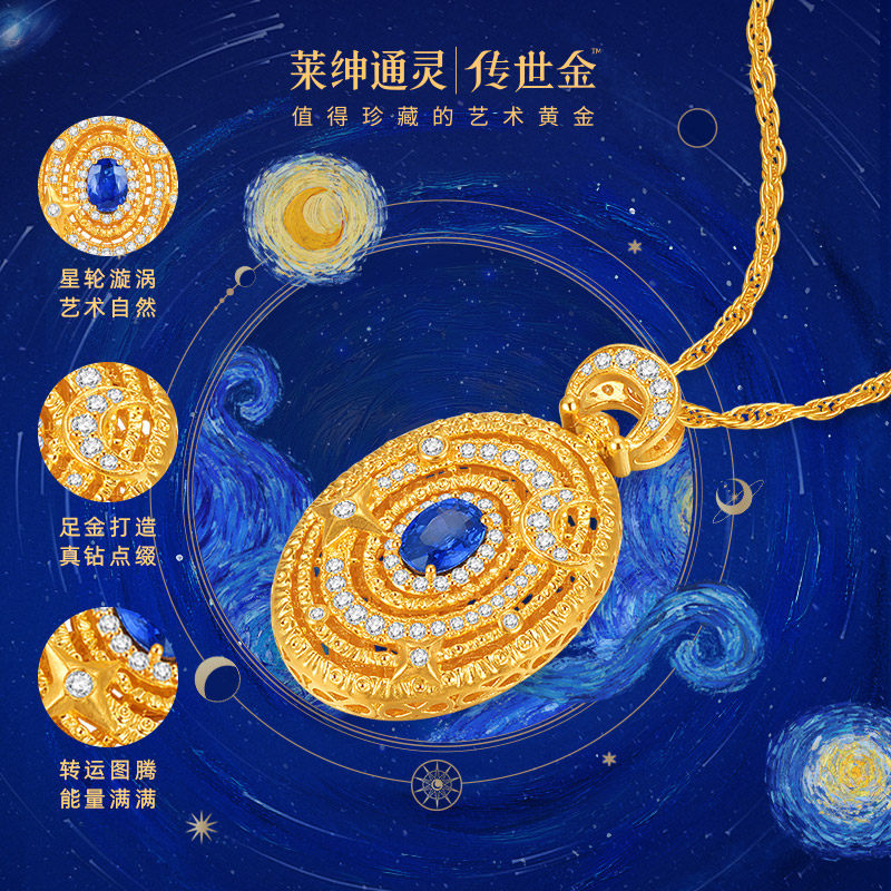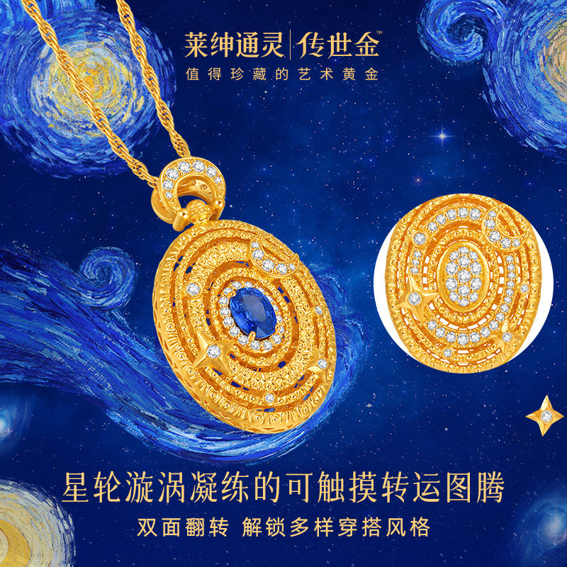 【商场同款】莱绅通灵明星同款转运星轮有球必应黄金蓝宝钻石项链