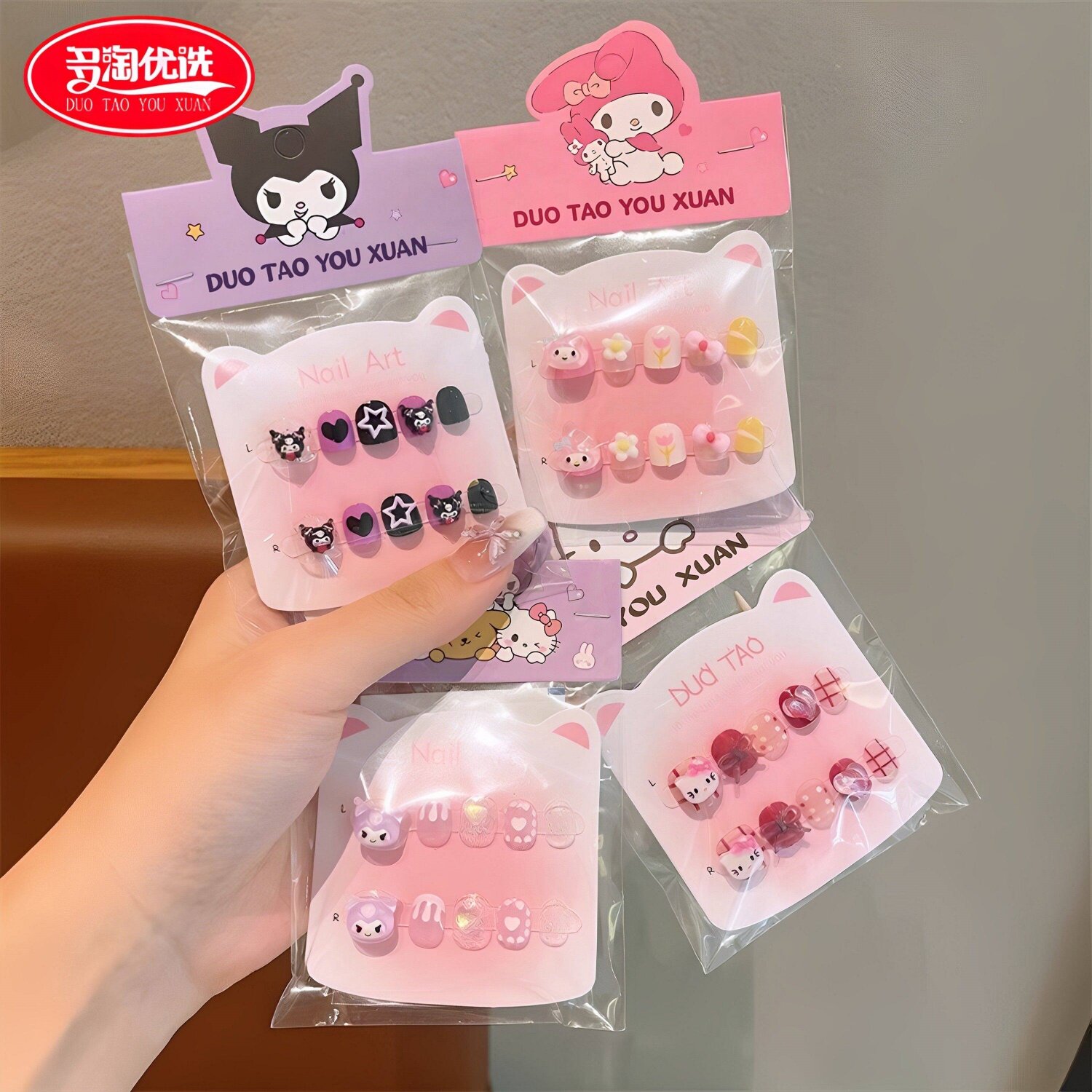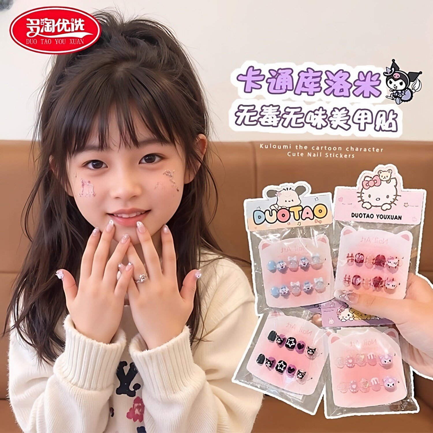 新卡通库洛米儿童穿戴甲小女孩果冻胶美甲贴女童假指甲贴片无毒