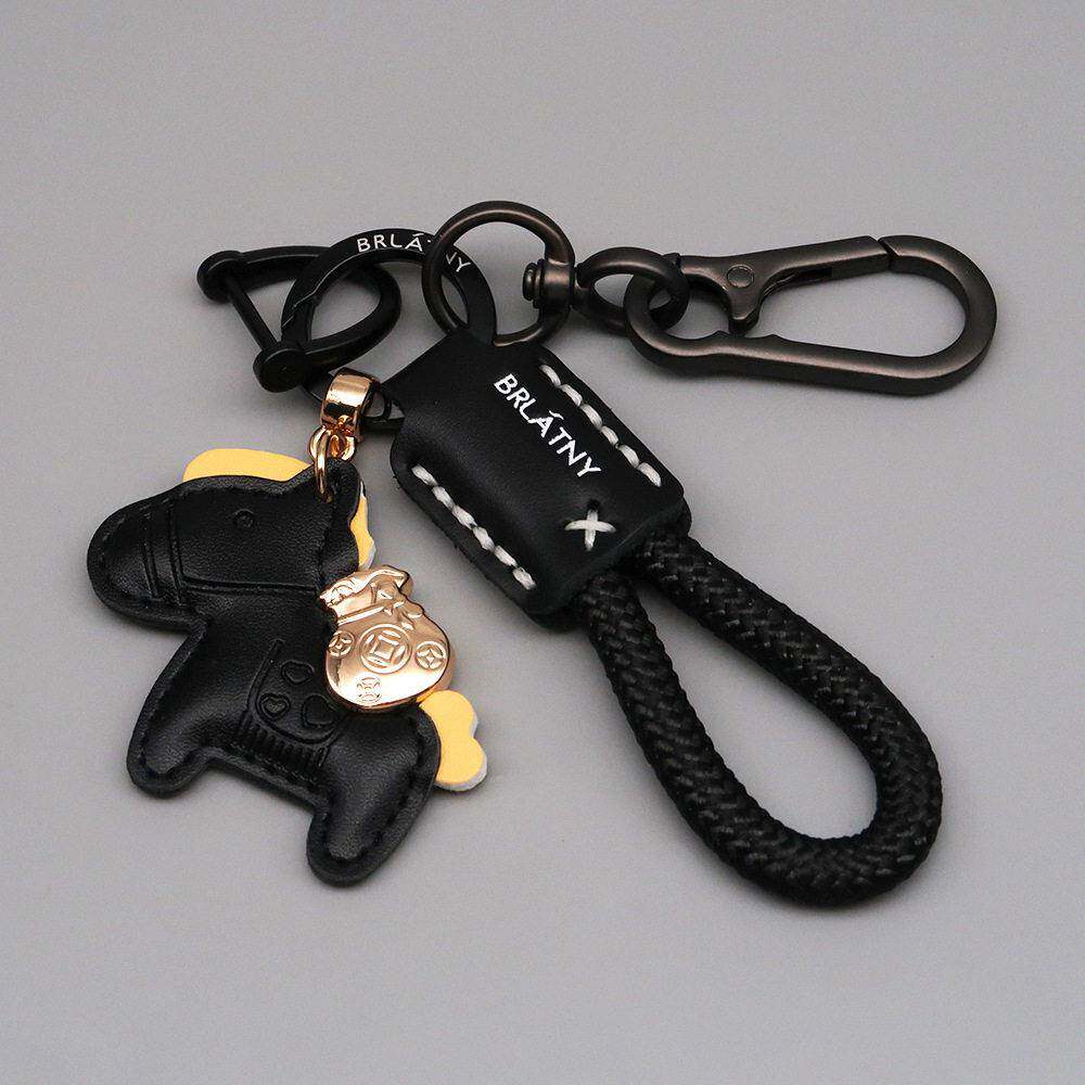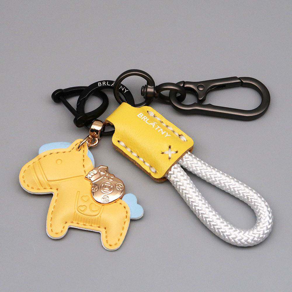 卡通马上有钱钥匙扣创意汽车钥匙炼圈皮革手工编织绳书包挂件礼物