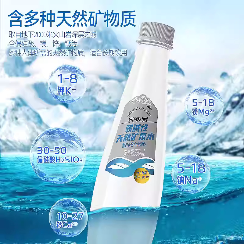 纯极限含长白山矿泉水330ml*12瓶弱碱性低氘矿物质整箱装饮用