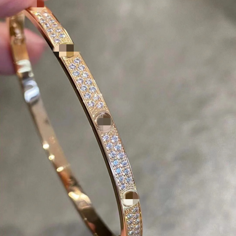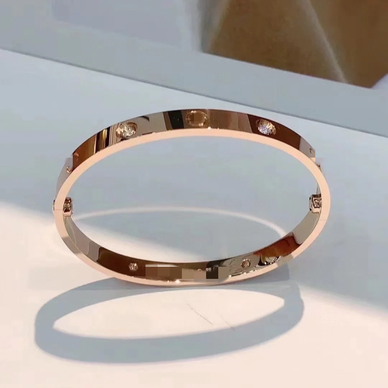 经典款手镯男女款18K玫瑰金宽窄版镶钻情侣款轻奢百搭手环不掉色