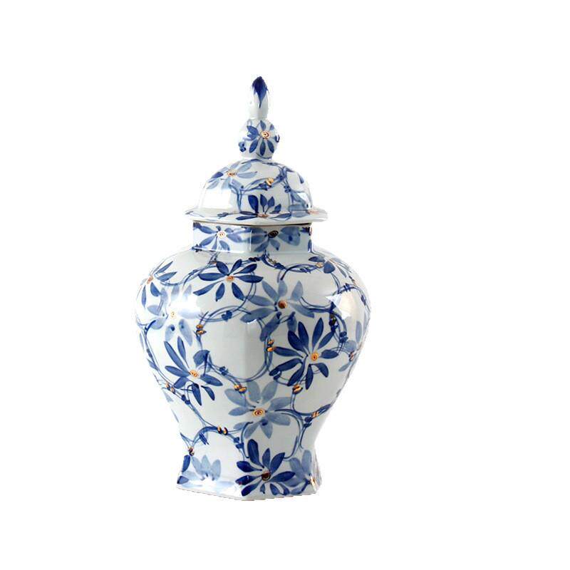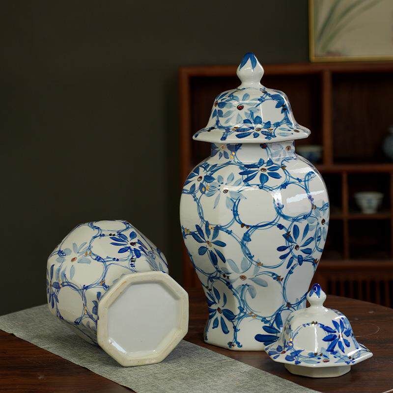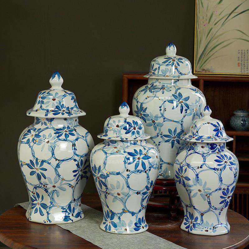 新中式青花瓷复古花瓶陶瓷创意插花器客厅玄关装饰储物罐摆件