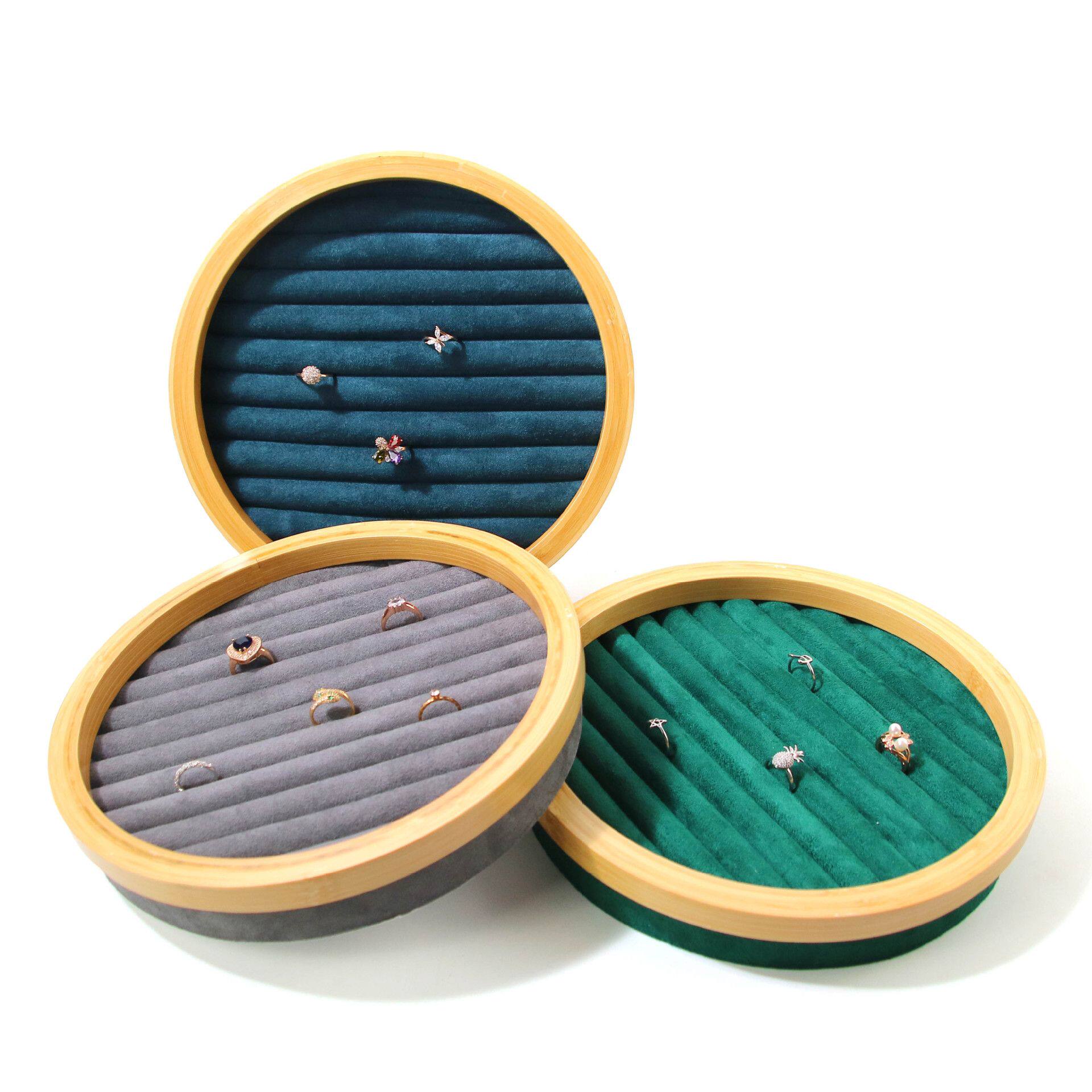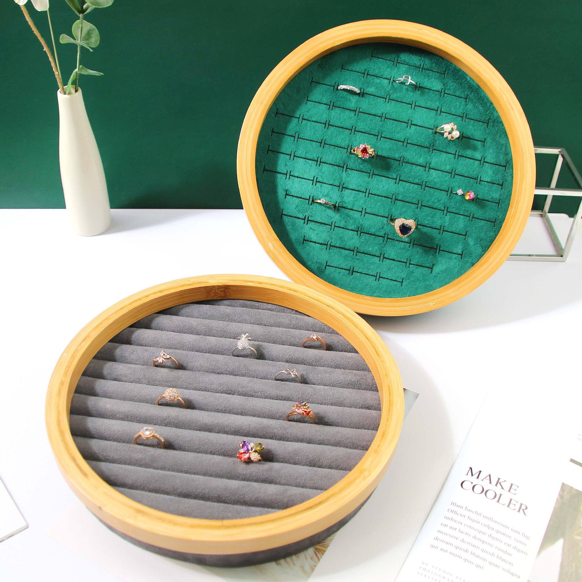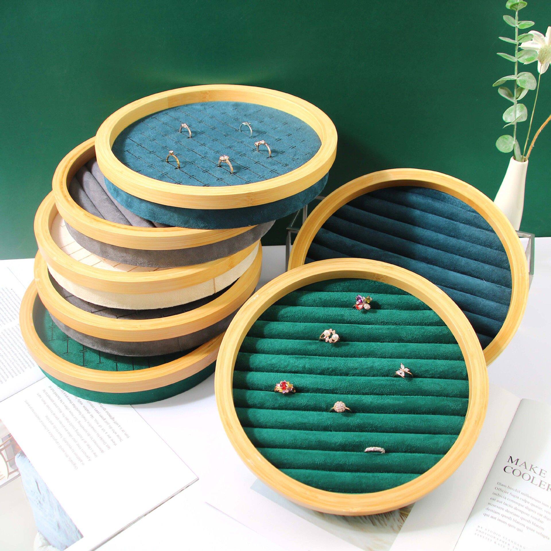 圆形竹木首饰收纳盘戒指展示盘耳钉指环陈列道具珠宝摆件饰品托盘