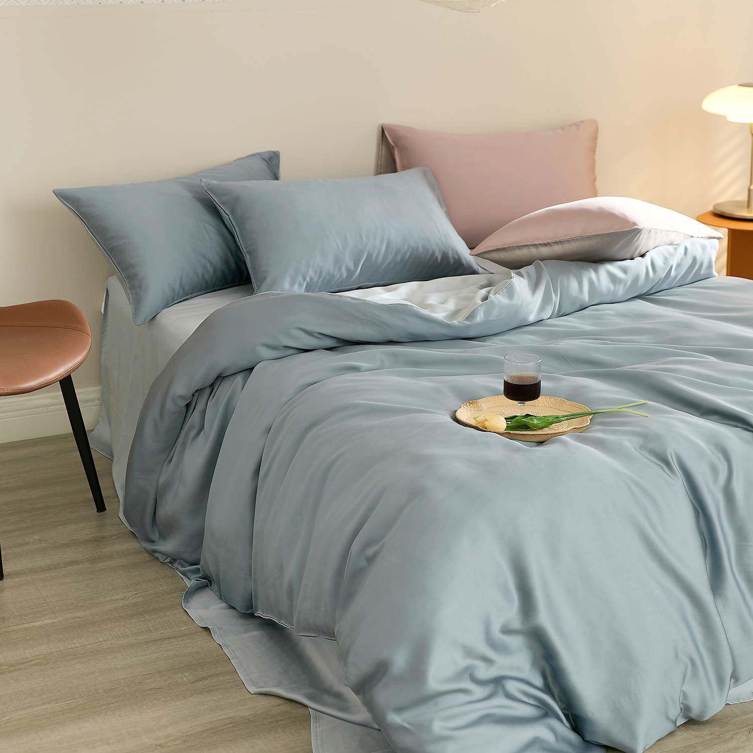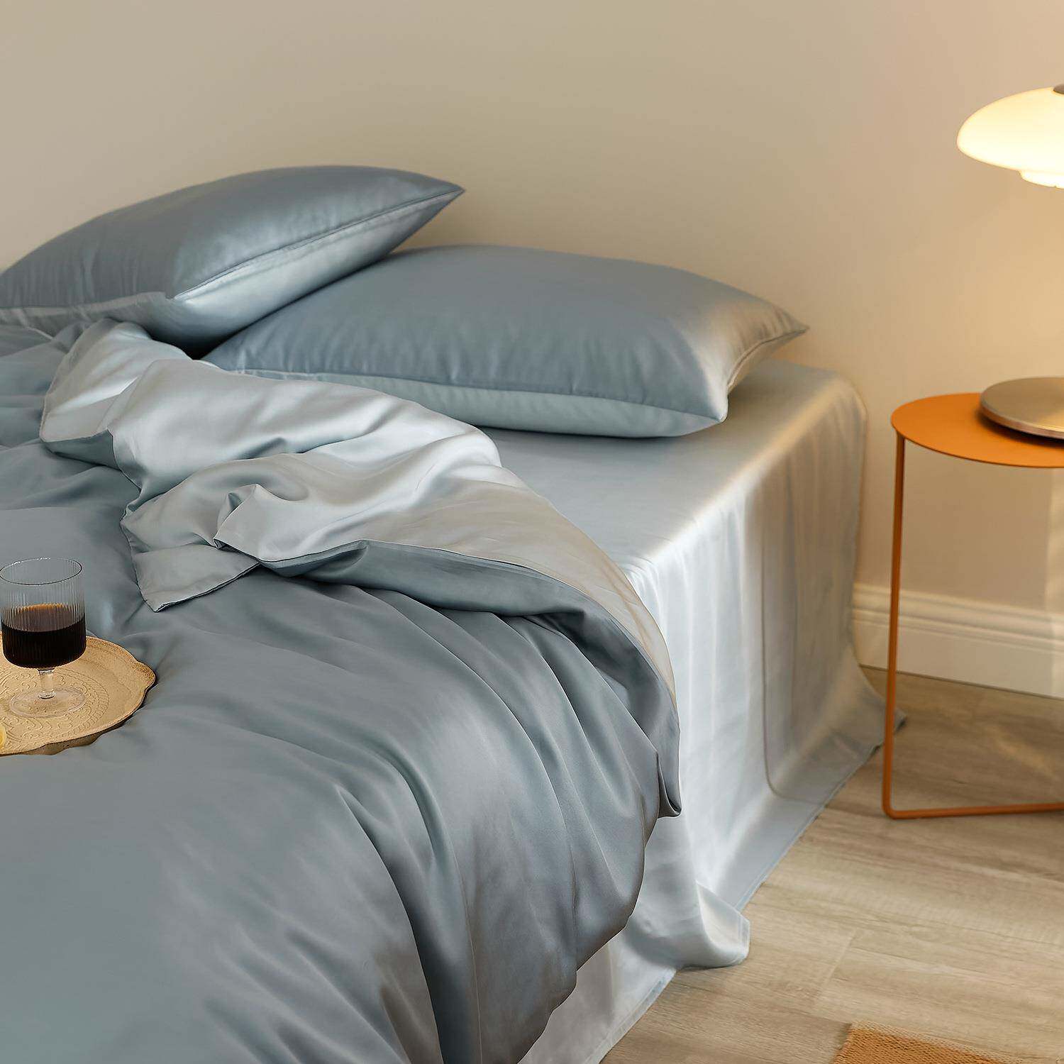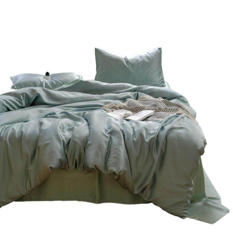 莱赛尔高支数夏季四件套凉感拼色亲肤纯色现货被套天丝丝滑套件