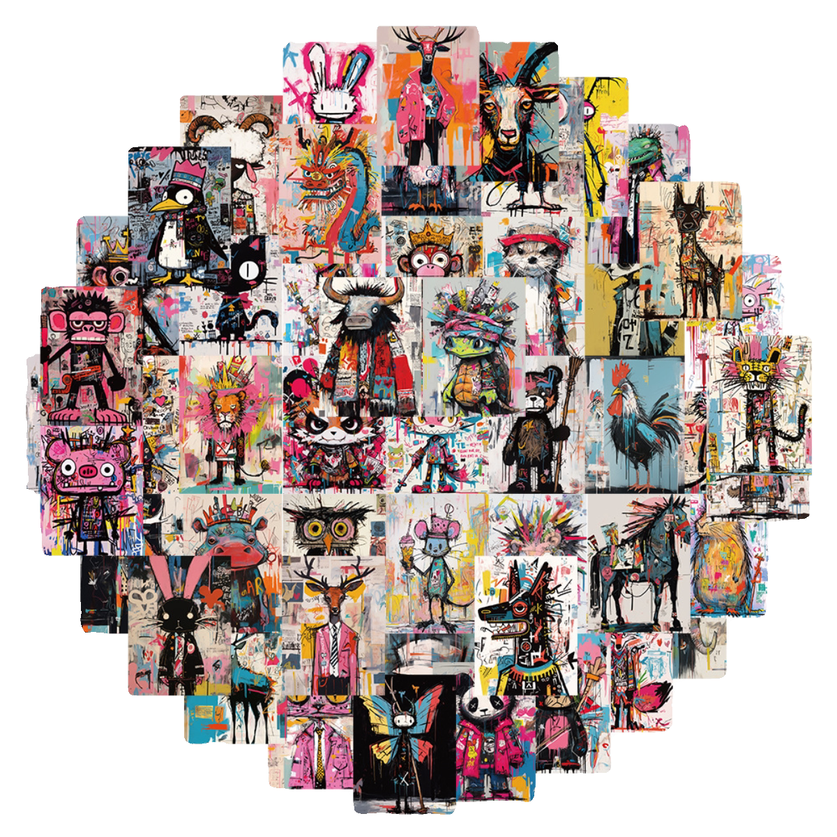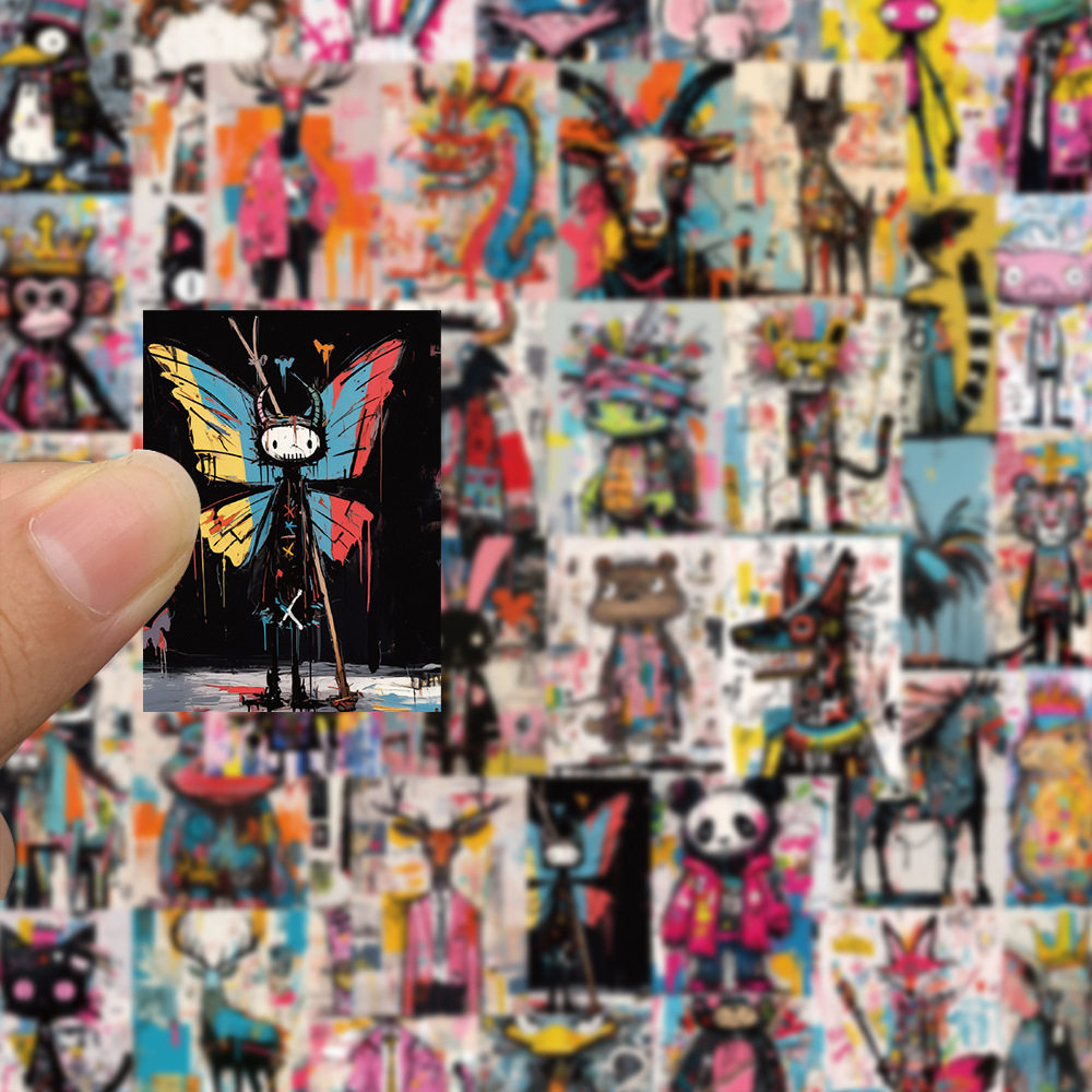 50张巴斯奎特风格疯狂艺术贴纸笔记本电脑吉他装饰diy防水贴画