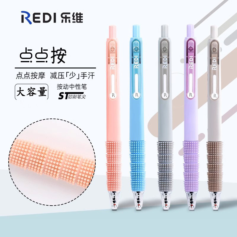 乐维按动中性笔0.5黑色ST切削笔尖刷题速干大容量乐普升文具点点
