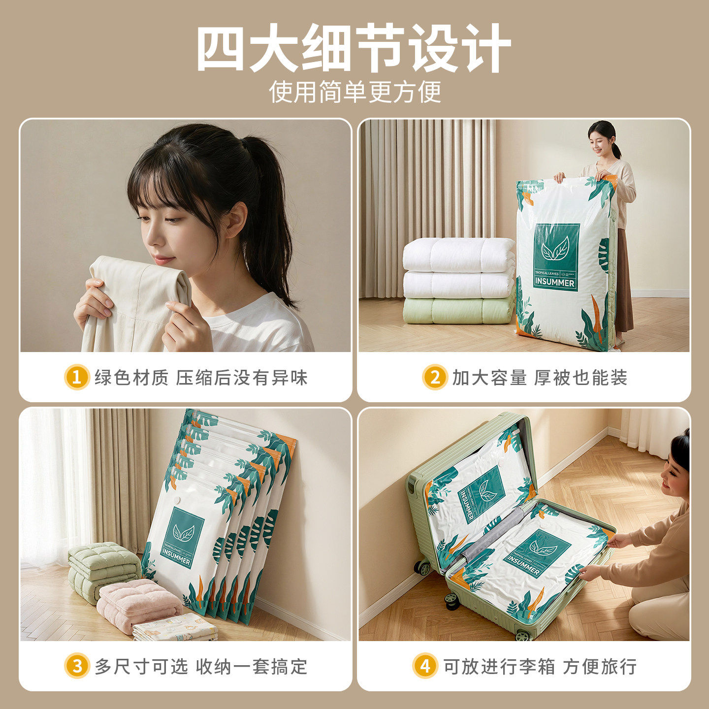 太力真空压缩袋收纳衣服被子衣物抗菌家用羽绒服棉被抽气旅行神器