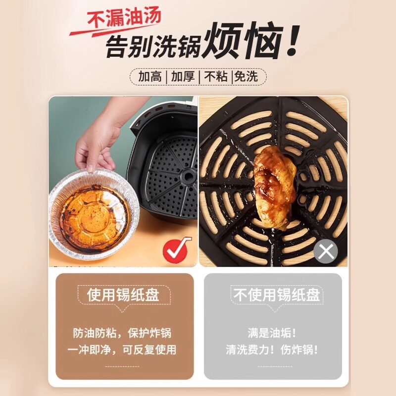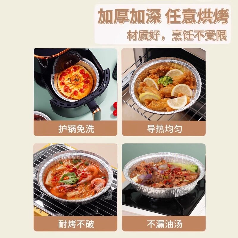 空气炸锅专用加厚锡纸盘盒烧烤箱烘焙锡箔碗家用锡纸盒食品级圆形