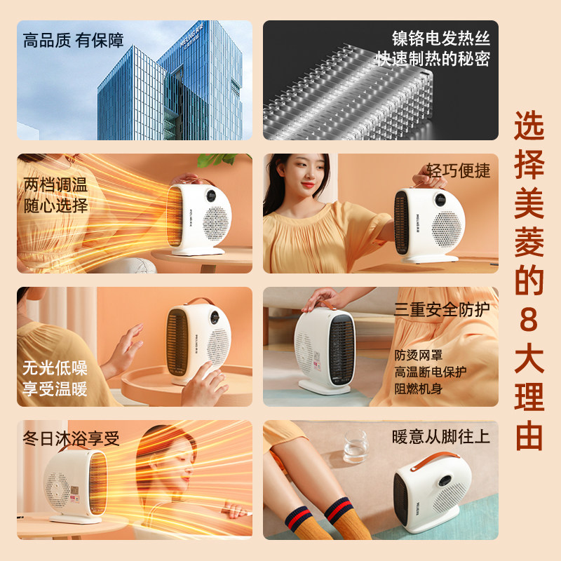 美菱取暖器暖风机家用电暖气器小太阳烤火炉节能小型办公室热风机