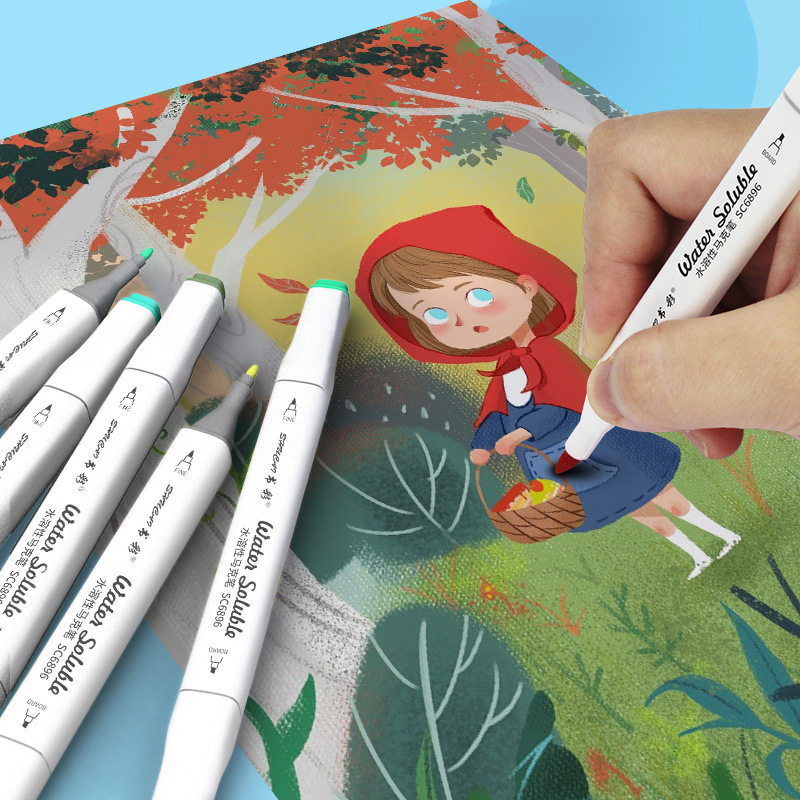 mideer弥鹿水性马克笔美术专用生日礼物彩色笔不透色软头水彩笔套装儿童漫画油性可水洗画笔