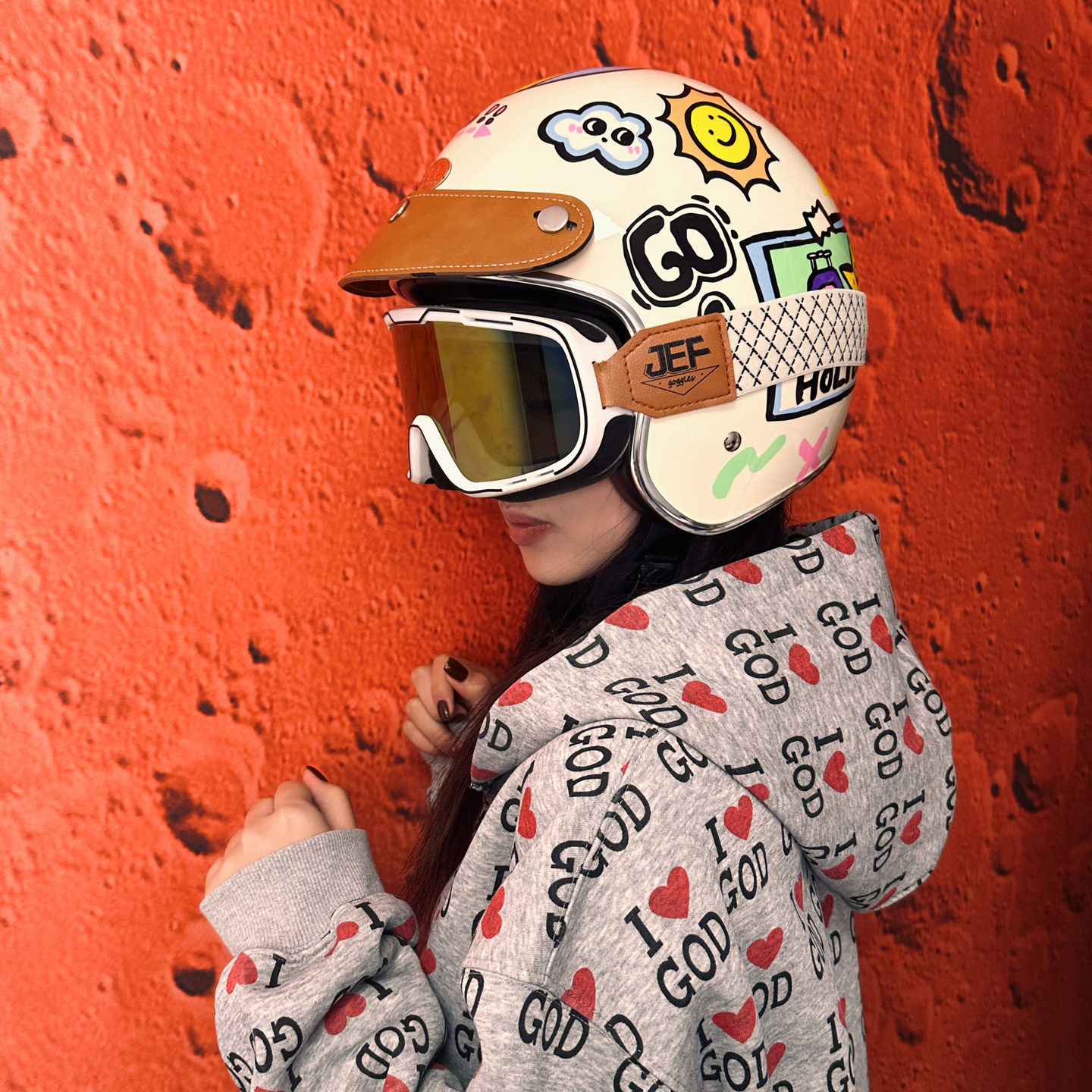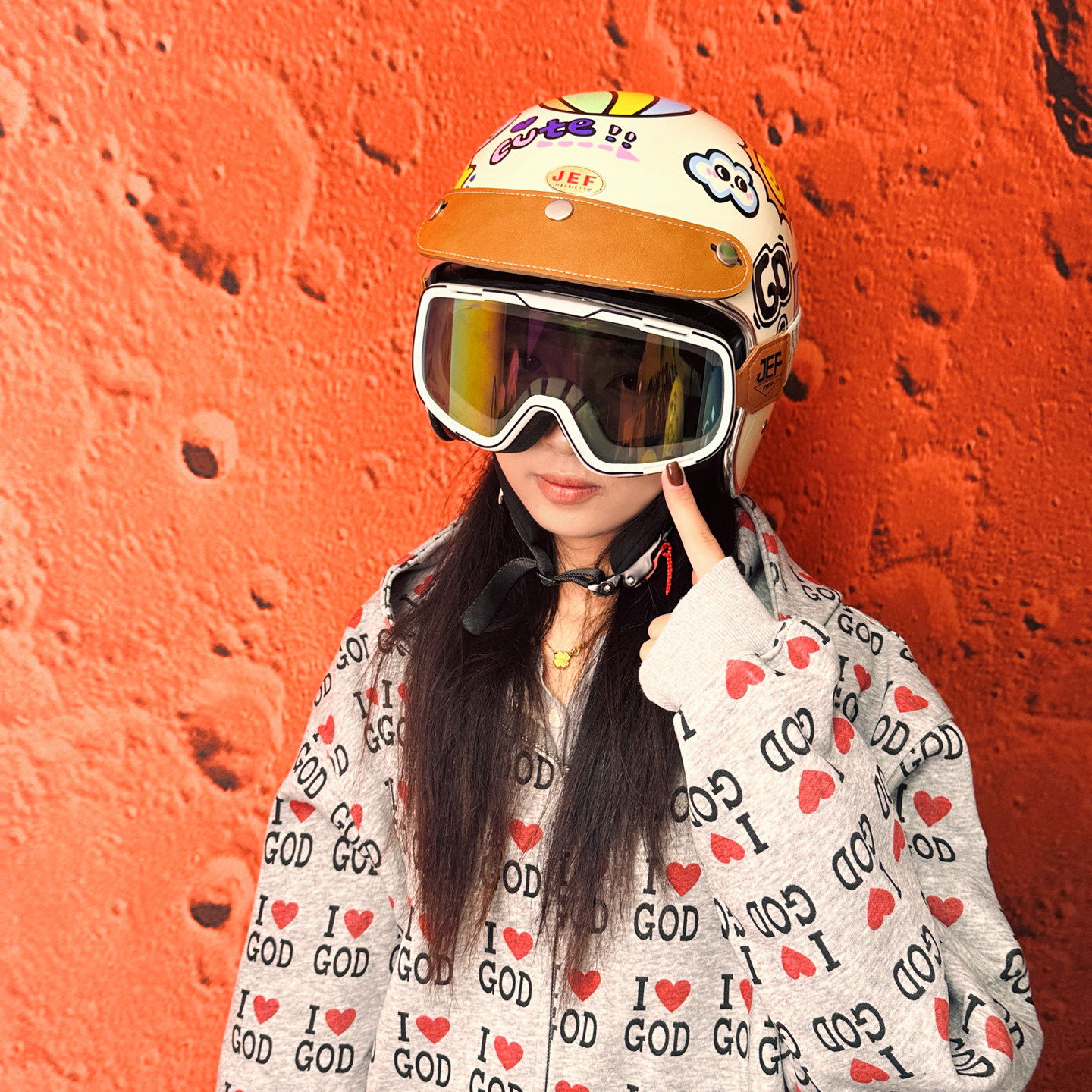 台湾可爱卡通复古缤纷假日安全帽四季摩托车头盔男女保暖3/4盔冬