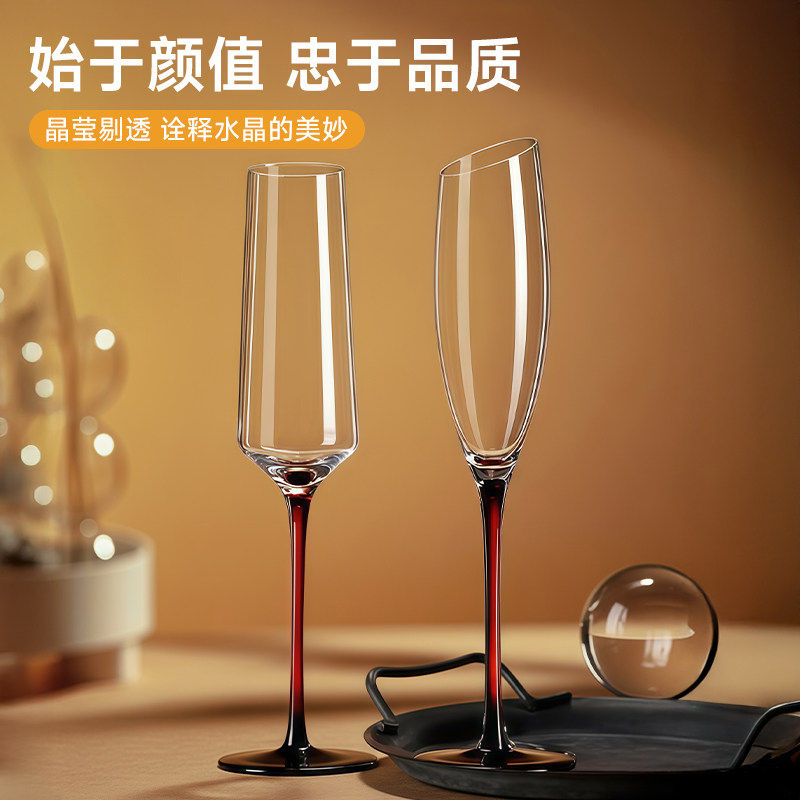 高脚香槟杯一对轻奢高档水晶玻璃家用高颜值红酒白葡萄酒起泡酒杯
