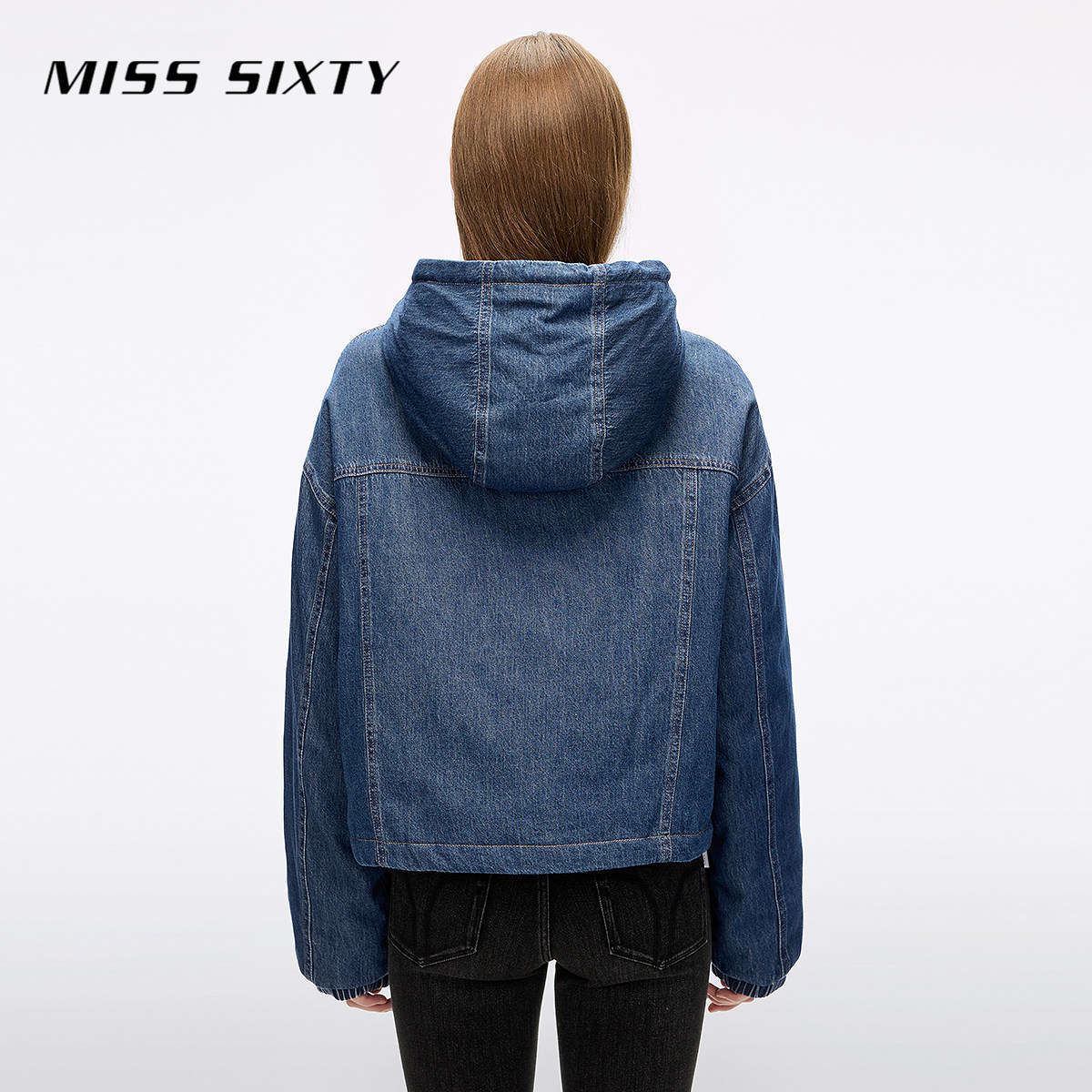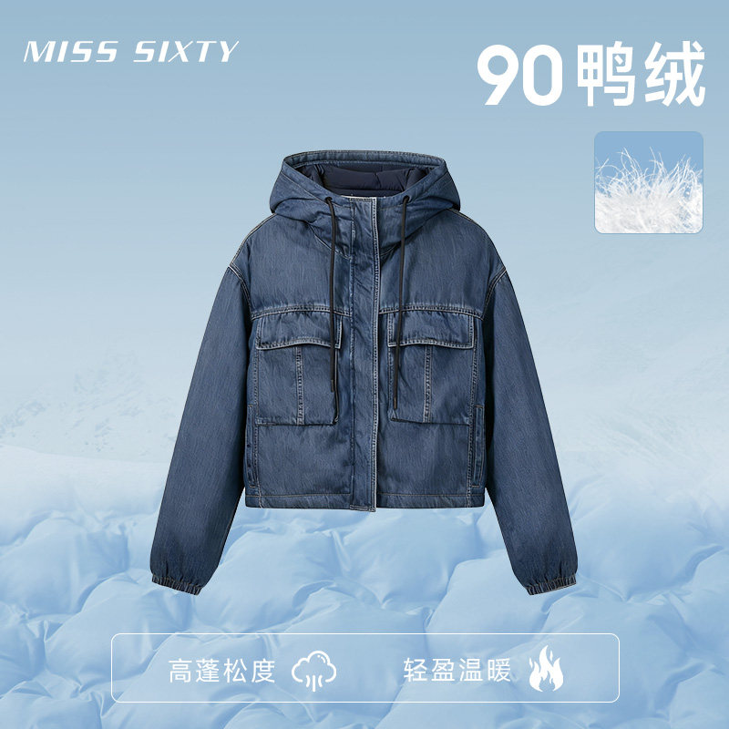 【保暖90鸭绒】Miss Sixty25冬新款牛仔羽绒服连帽工装短款外套