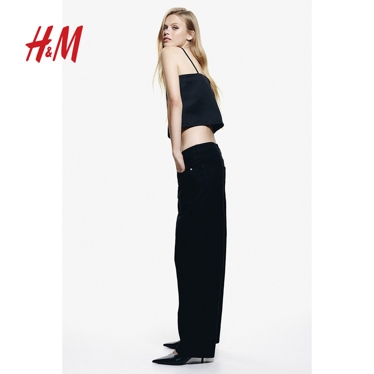 HM女装休闲裤春季宽松版直筒休闲时尚通勤带拉链礼服长裤1249235