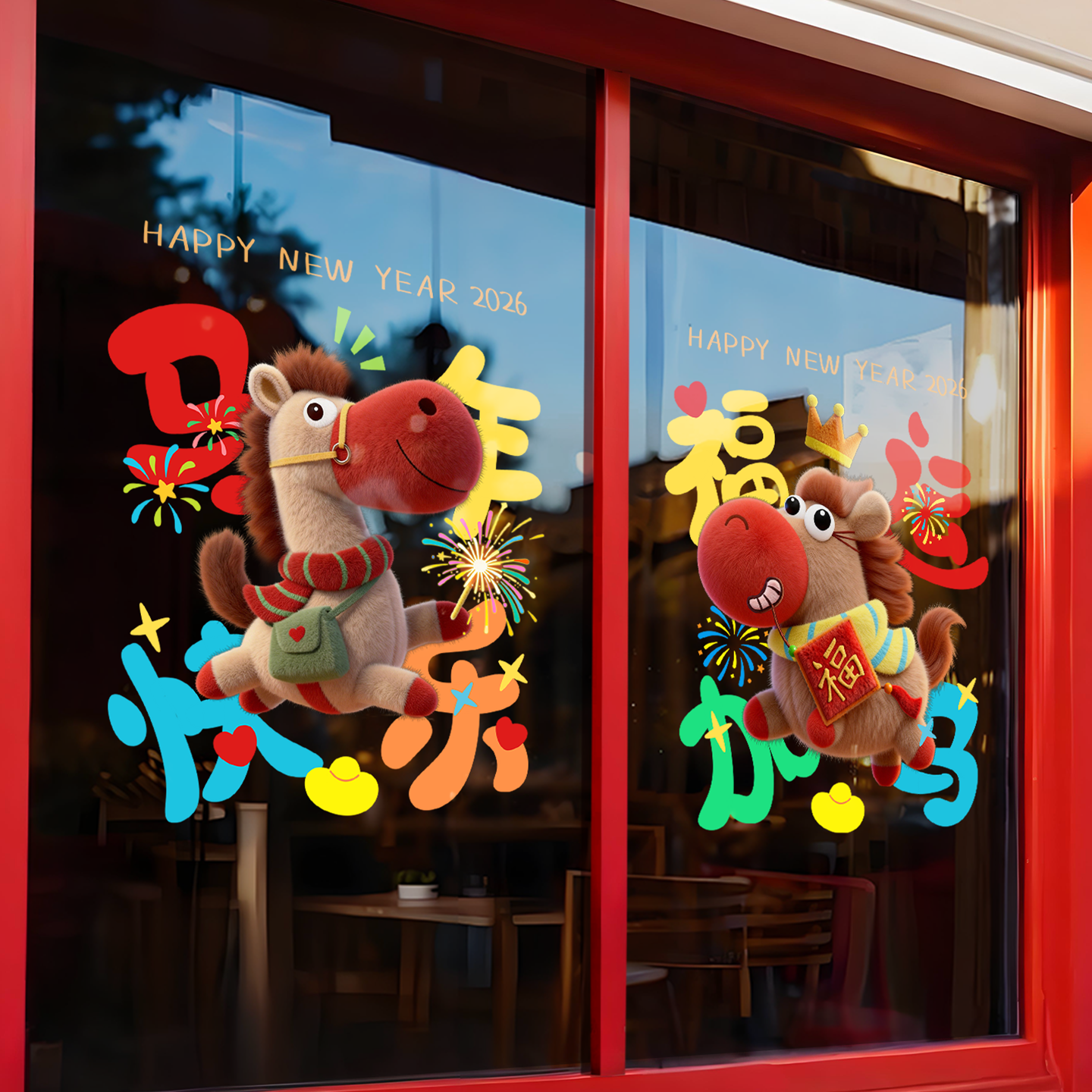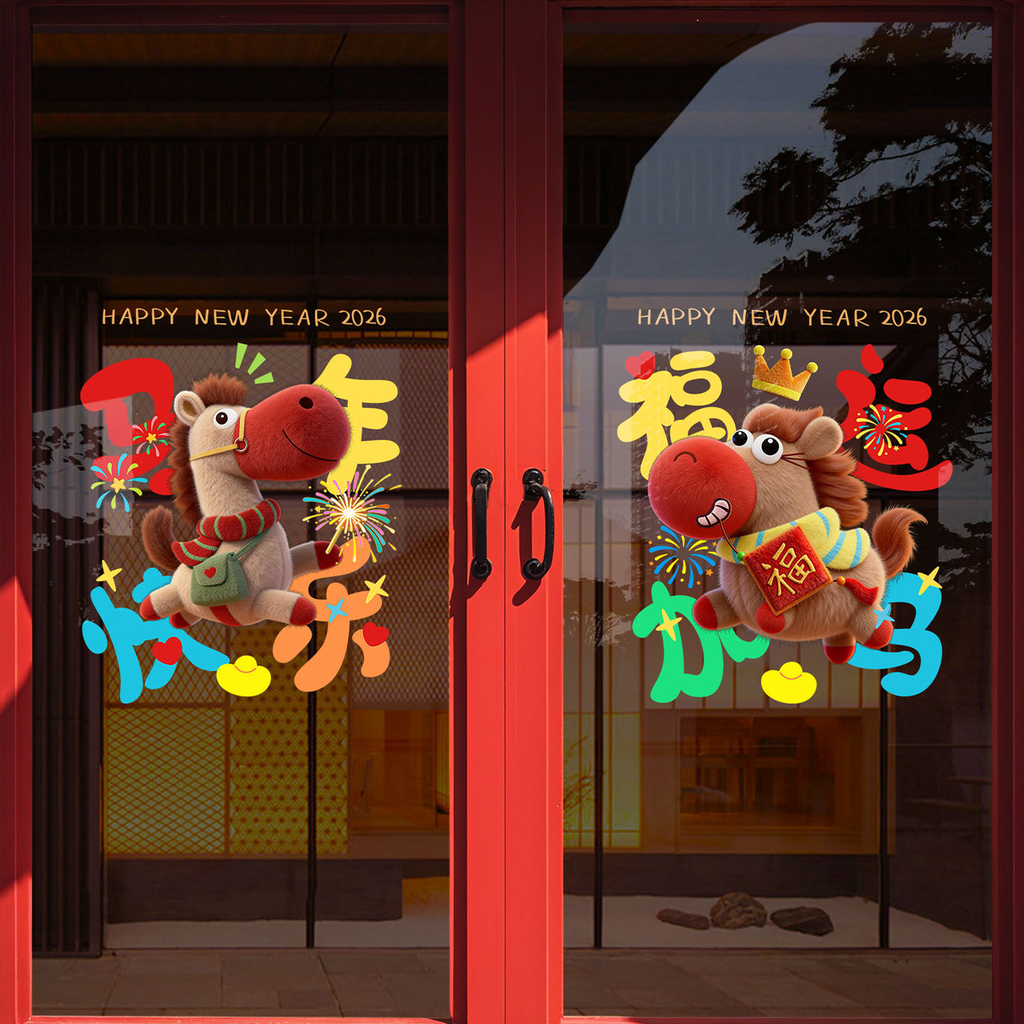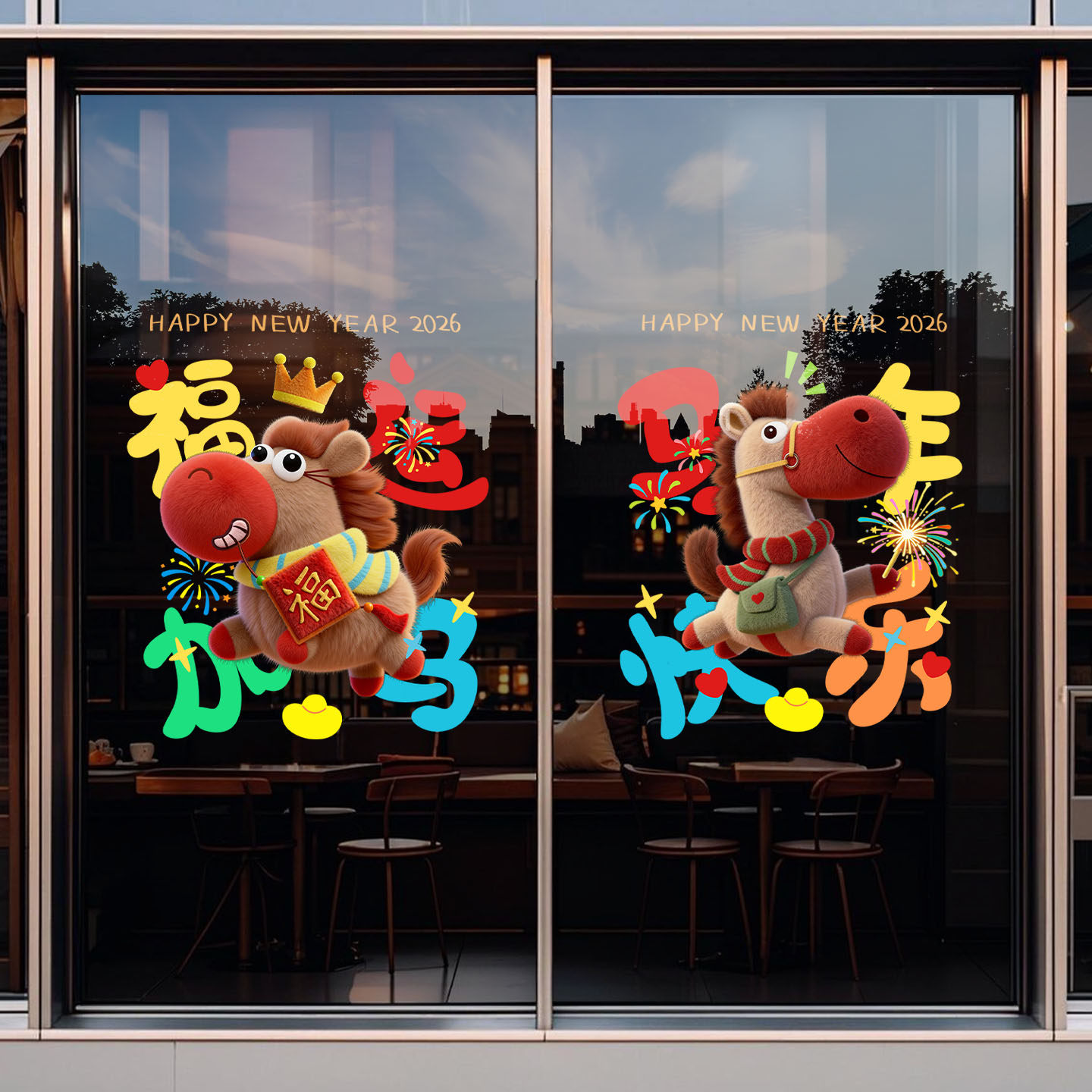 2026新年窗花马年装饰新款玻璃门贴纸静电橱窗贴春节氛围布置贴画