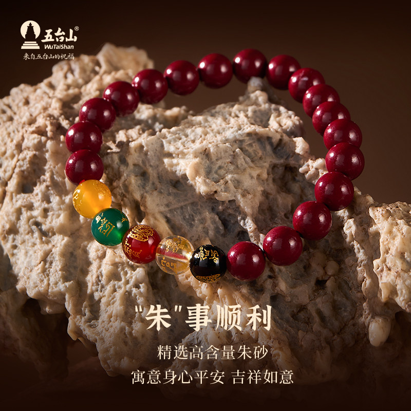普陀山朱砂手串珠蛇年手链本命年普贤护身手镯官方旗舰店正品