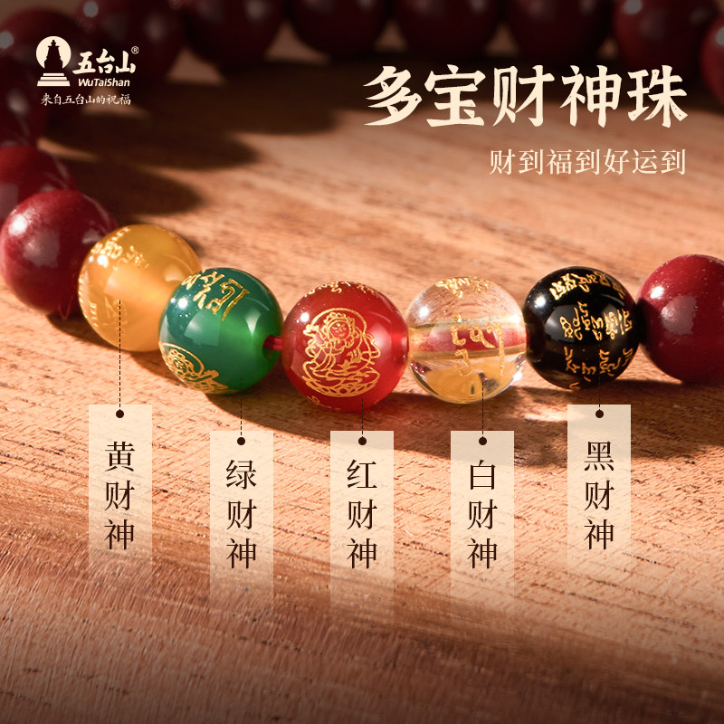 五台山新中式朱砂手串护身符转运佛珠五路财神富贵红玛瑙招财手链