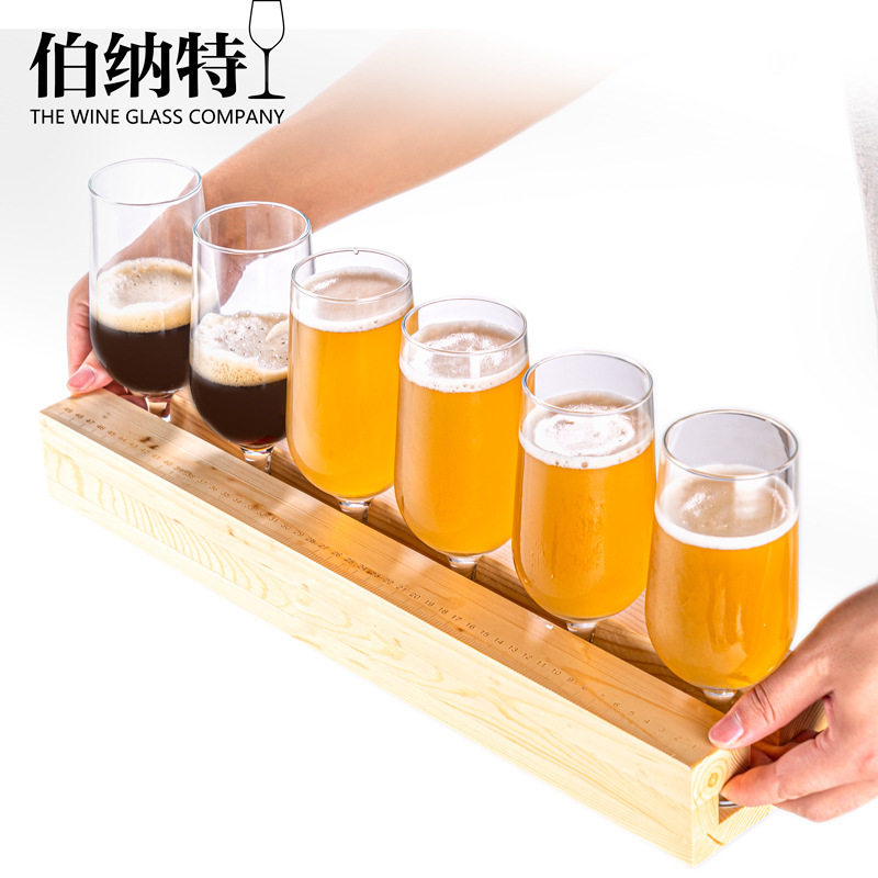 网红小酒馆玻璃精酿啤酒杯木托盘时尚创意酒吧啤酒杯套装可做logo