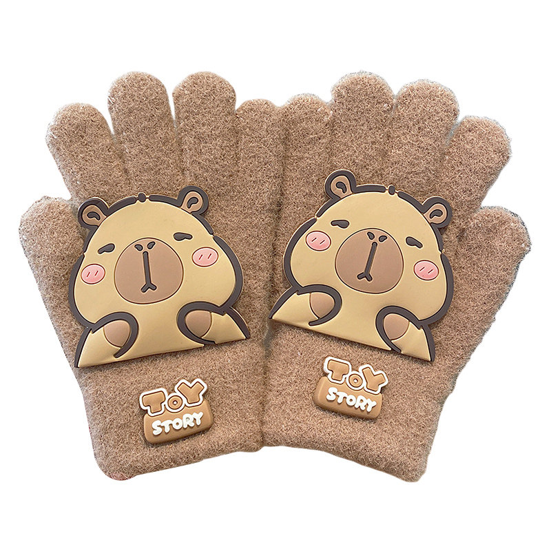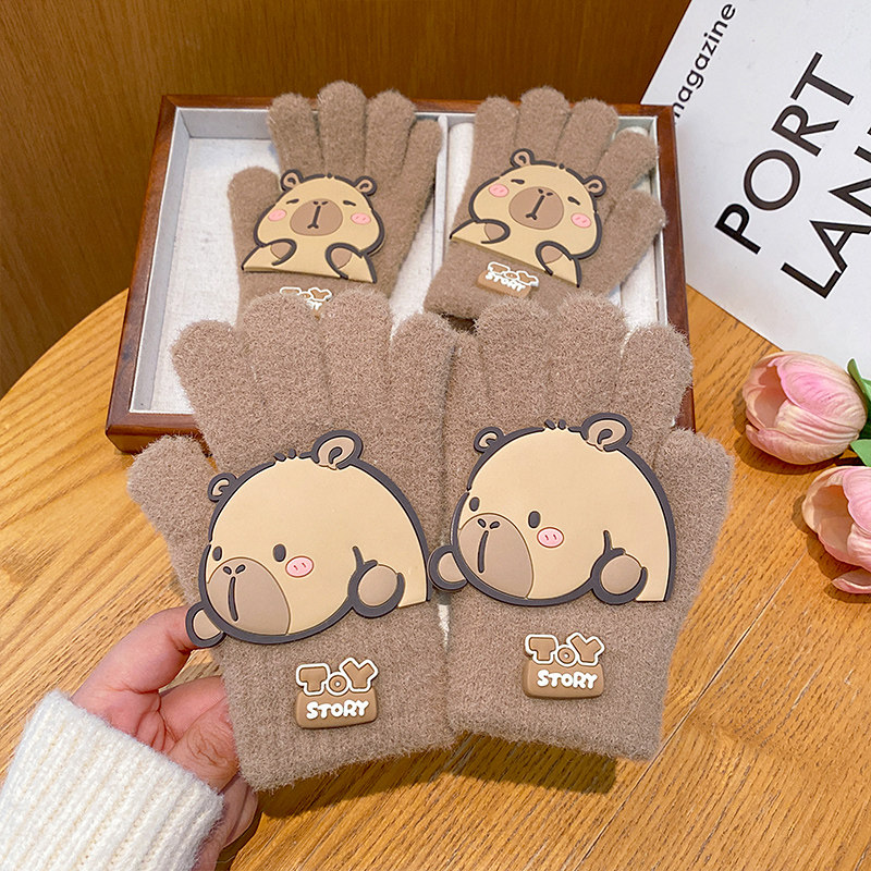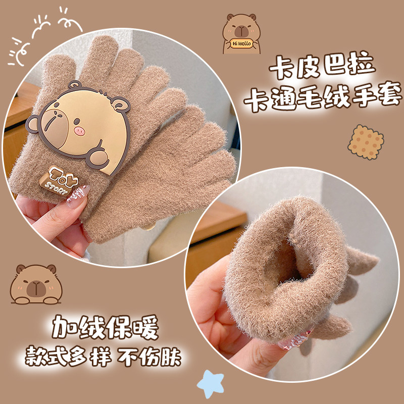 儿童秋冬卡皮巴拉手套冬季保暖女童分指套防冻御寒加绒加厚五指套
