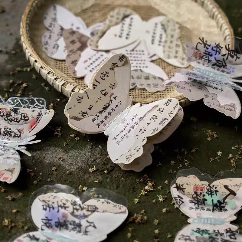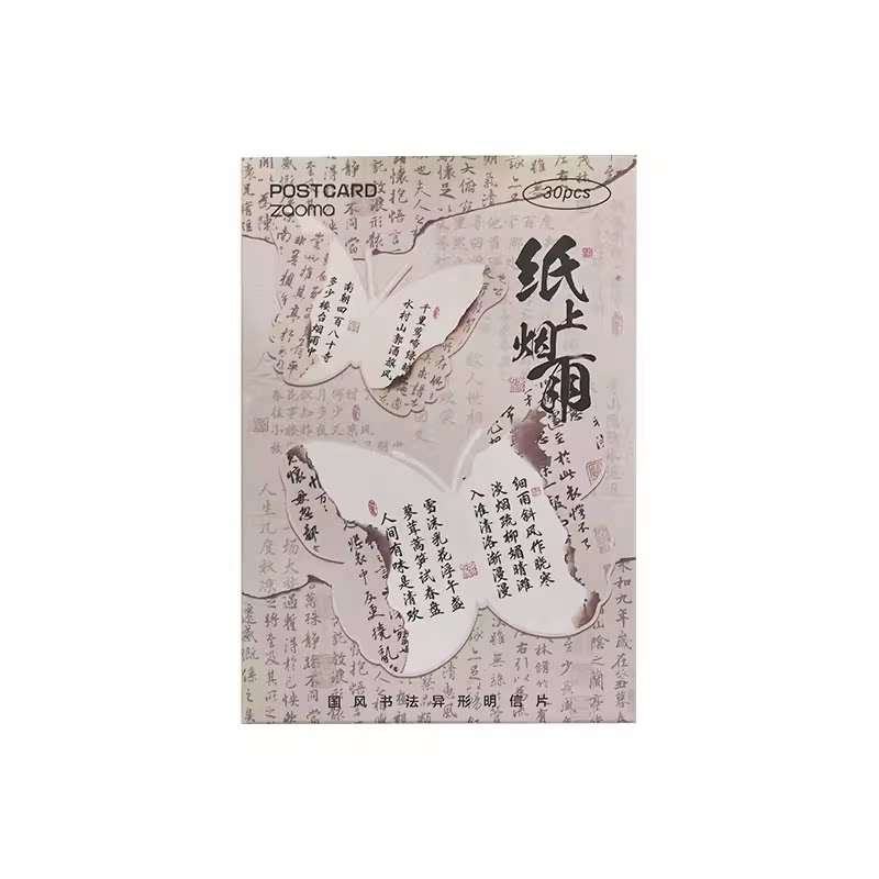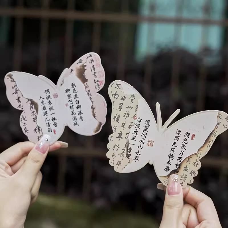 中国风手写书法明信片蝴蝶明信片创意复古风手帐diy素材装饰卡片