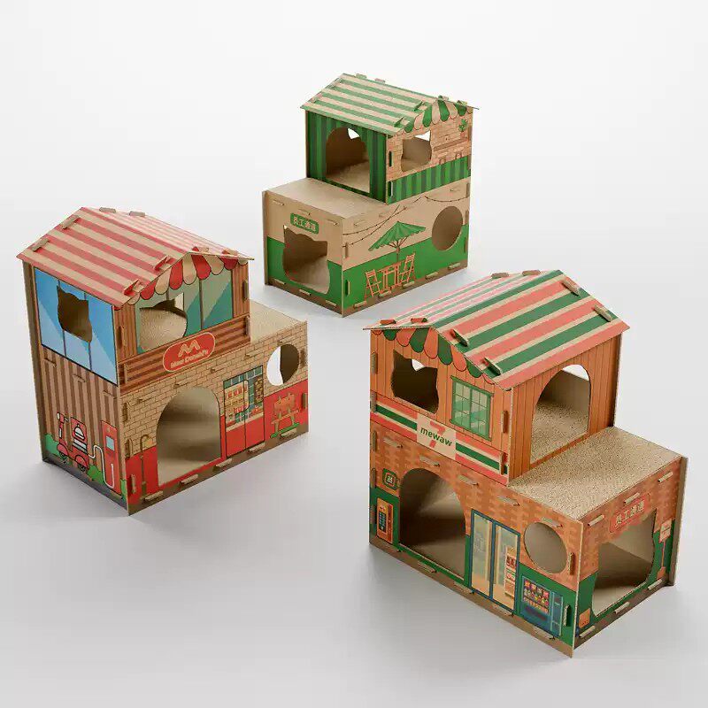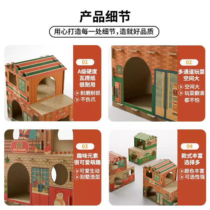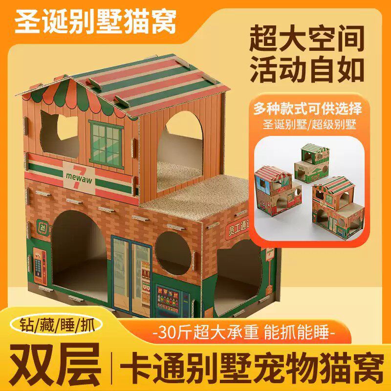 猫咪纸箱屋加大双层豪华别墅猫窝猫抓板瓦楞纸一体式商店半封闭