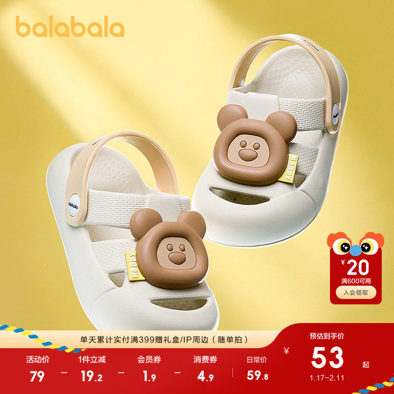 巴拉巴拉童鞋儿童凉鞋男童女童拖鞋卡通小动物鞋子2025夏季新款软