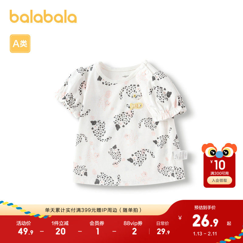 巴拉巴拉宝宝短袖t恤婴儿女童上衣夏装柔软舒适满印甜美泡泡袖萌