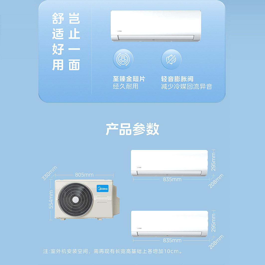 美的一拖二挂机家用中央空调冷暖变频大2匹55W挂式双内机1匹1.5P