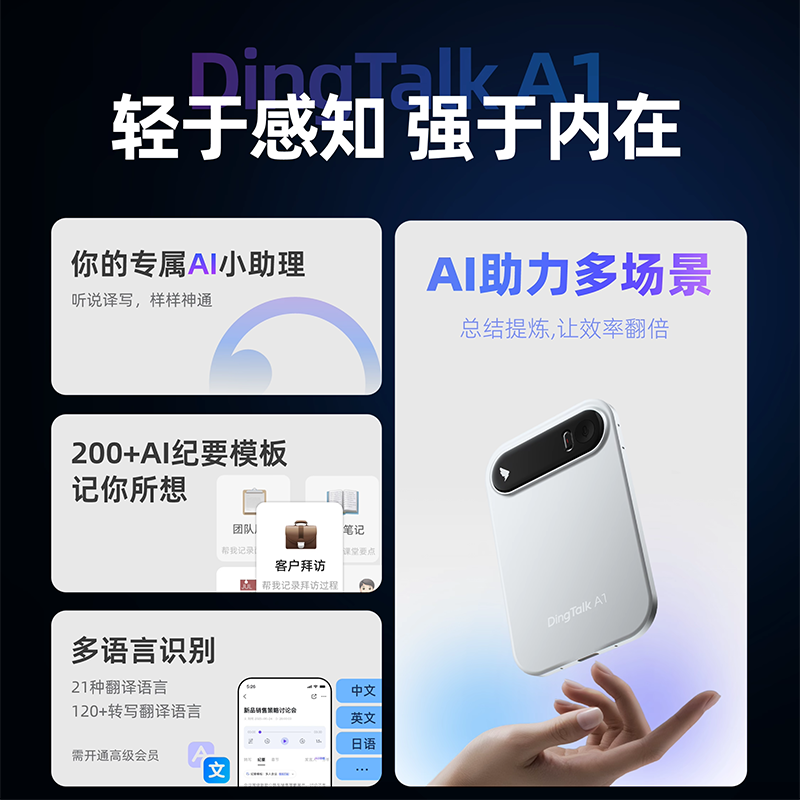 钉钉A1 DingTalk AI智能录音笔会议纪要AI分析总结实时转写翻译器