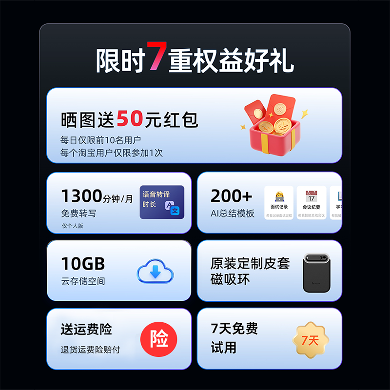 60天超长待机 AI录音转写 总结纪要分析翻译