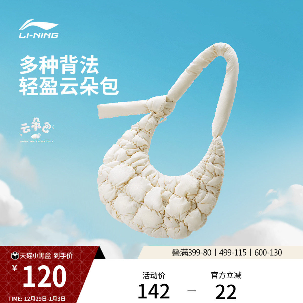 李宁奶芙包男女25新款官方正品户外休闲云朵绑带斜挎包运动单肩包