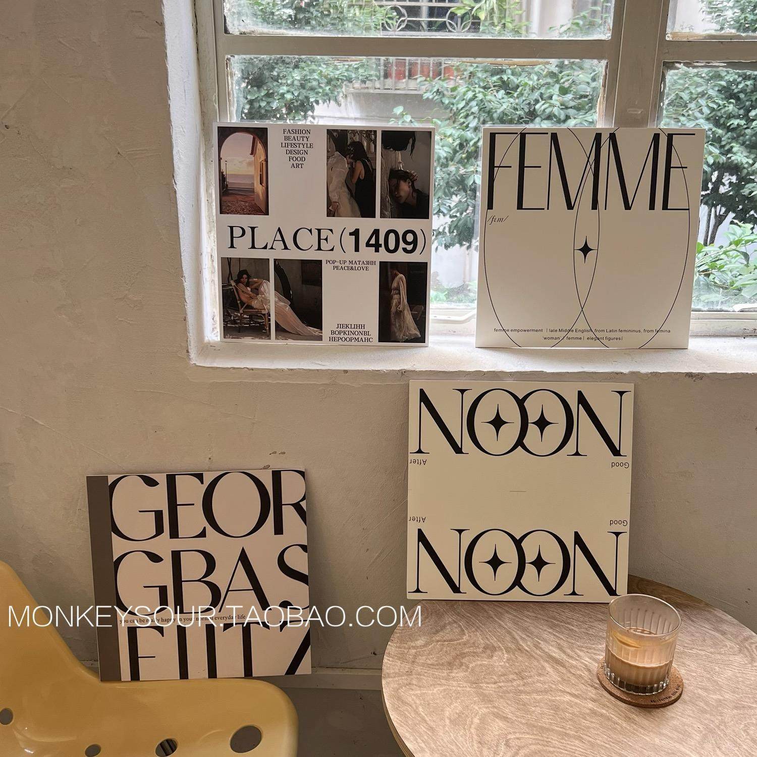 ins风PVC无框现代英文简约装饰画背景板家居桌面陈列摆件拍照道具