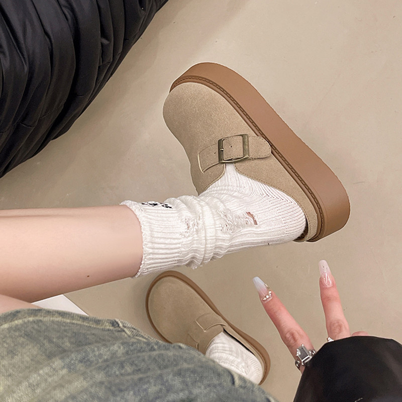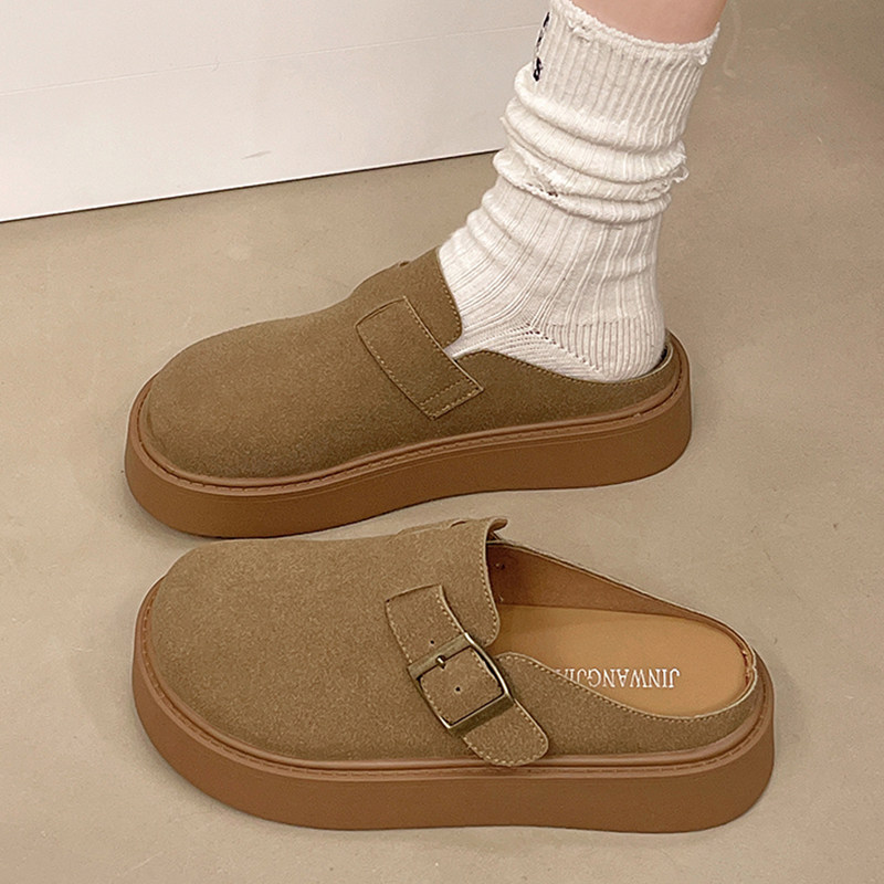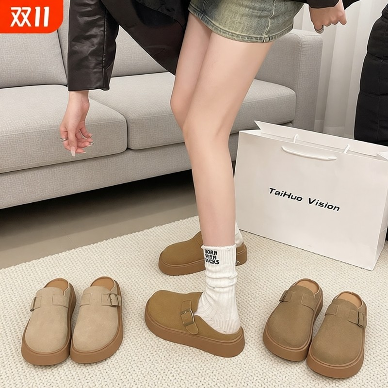 厚底勃肯鞋女2025新款冬季女鞋加绒半拖一脚蹬穆勒鞋子增高博肯鞋