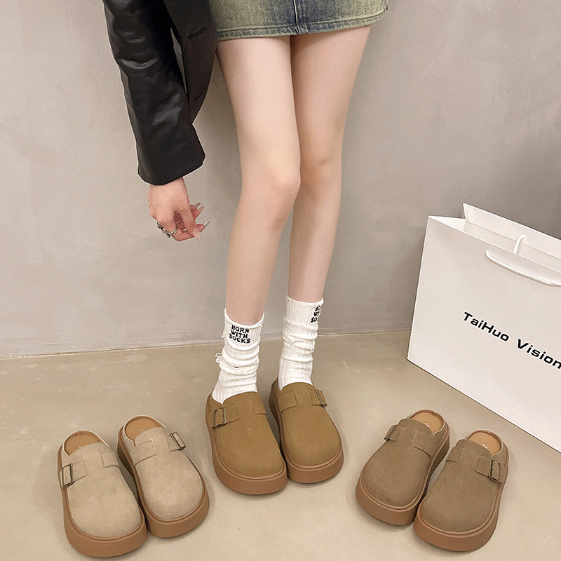 复古厚底勃肯包头半拖鞋女2025春季新款增高外穿懒人一脚蹬博肯鞋