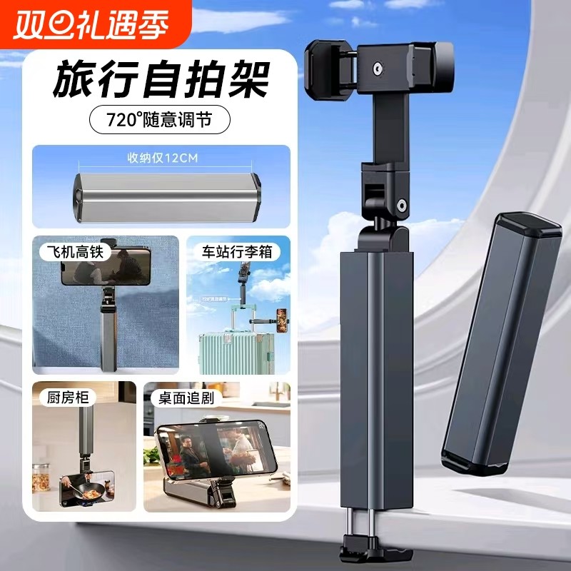 旅行手机支架高铁飞机可360度旋转火车动车旅拍桌面固定神器迷你小巧拍摄自拍杆折叠支撑架通用款导航追剧