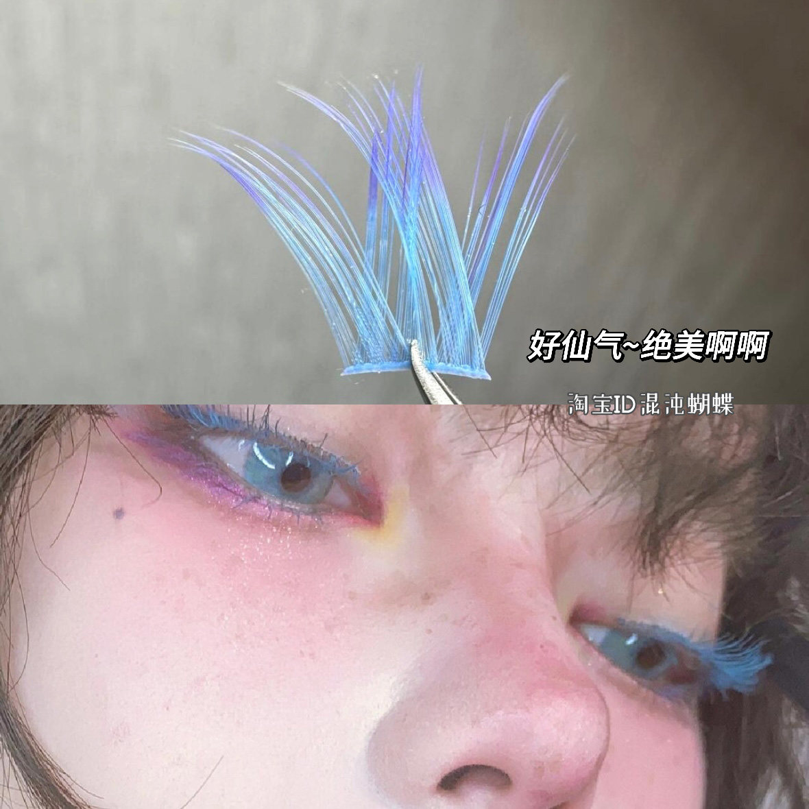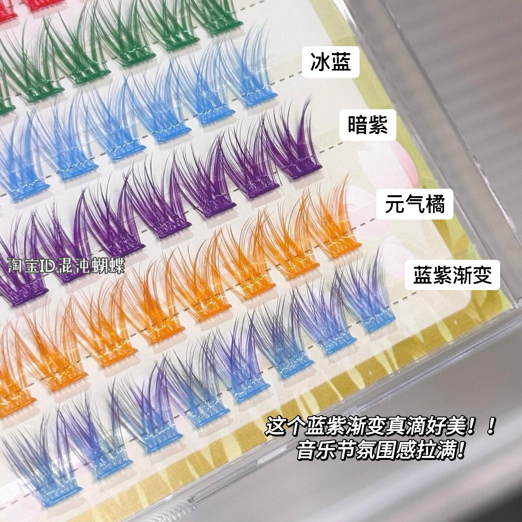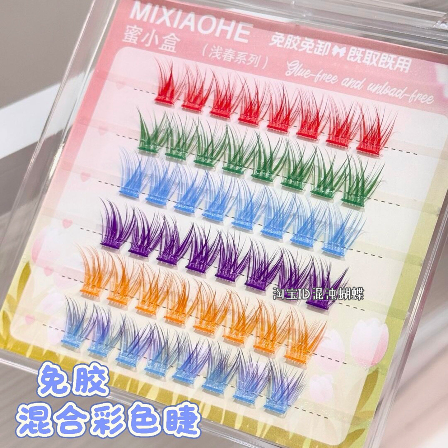 浅春多巴胺~彩色免胶假睫毛蓝色红色紫色绿色儿童舞台妆万圣节cos