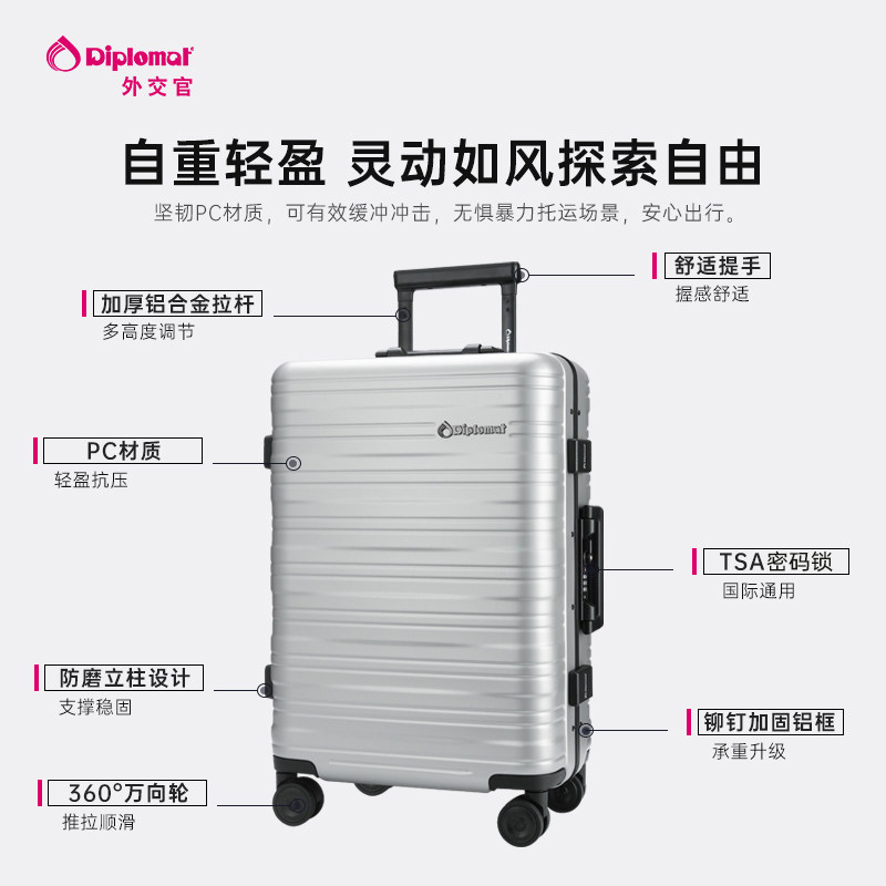 diplomat行李箱旅行箱密码箱拉杆箱男大容量箱铝框款20/24/28英寸