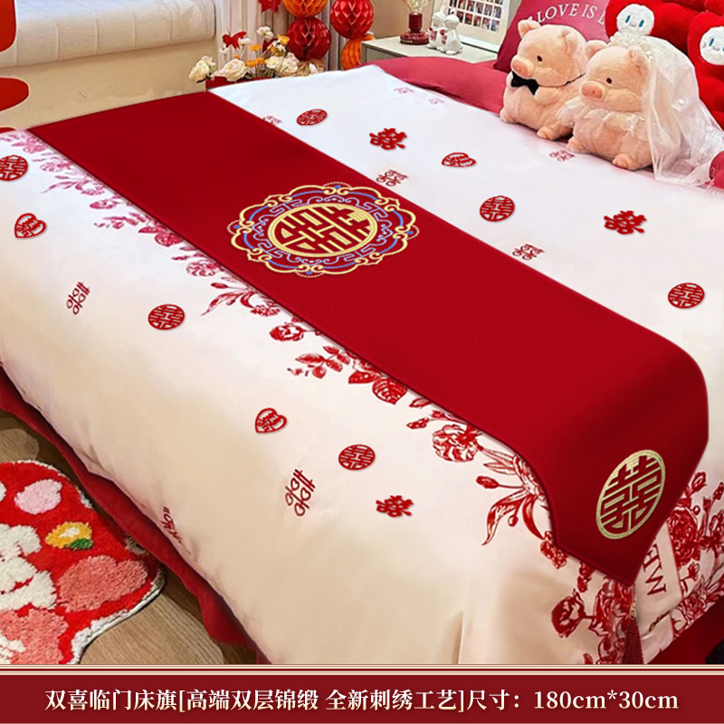 床旗中国风桌旗婚庆婚礼用品刺绣结婚喜庆字中式婚房装饰电视机柜