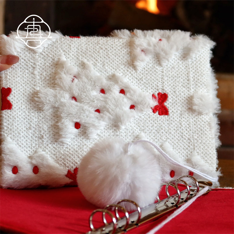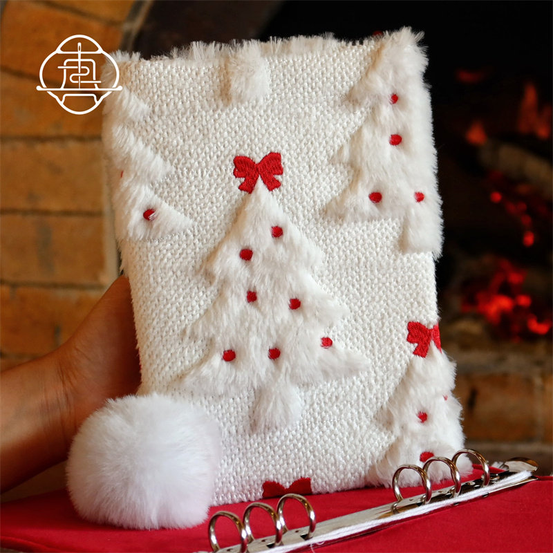 真我 雪绒蝴蝶结 毛绒刺绣可爱手工布书衣日记本笔记本a5a6手帐本