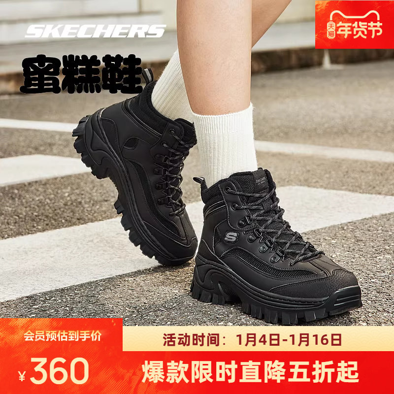 斯凯奇复古高帮蜜糕鞋甜酷潮流暖冬保护脚踝温暖隐形增高舒适轻便